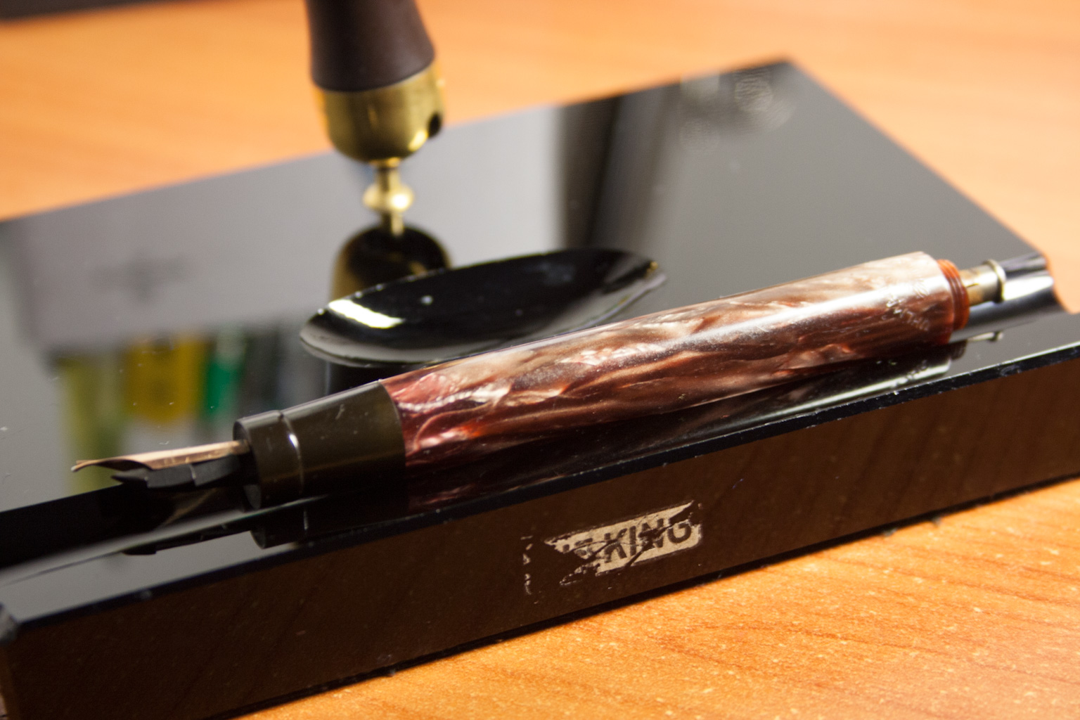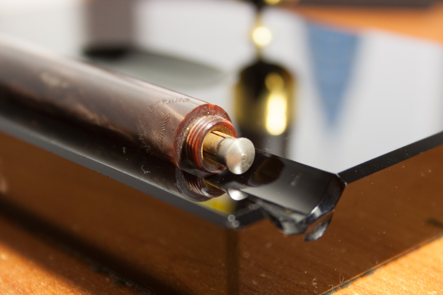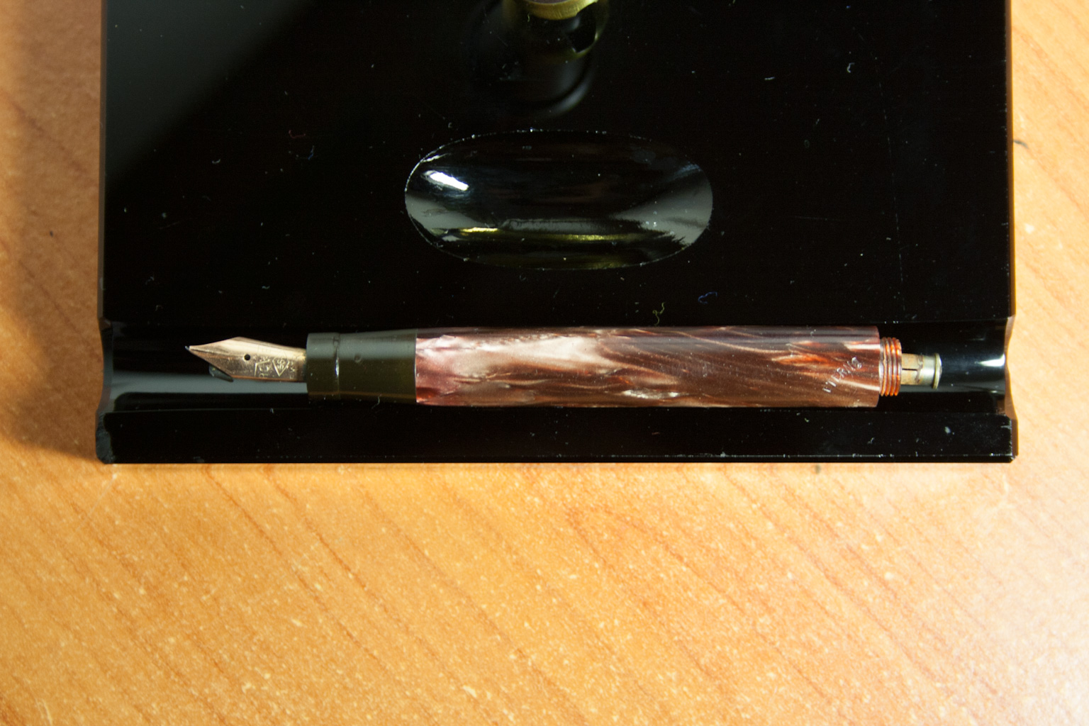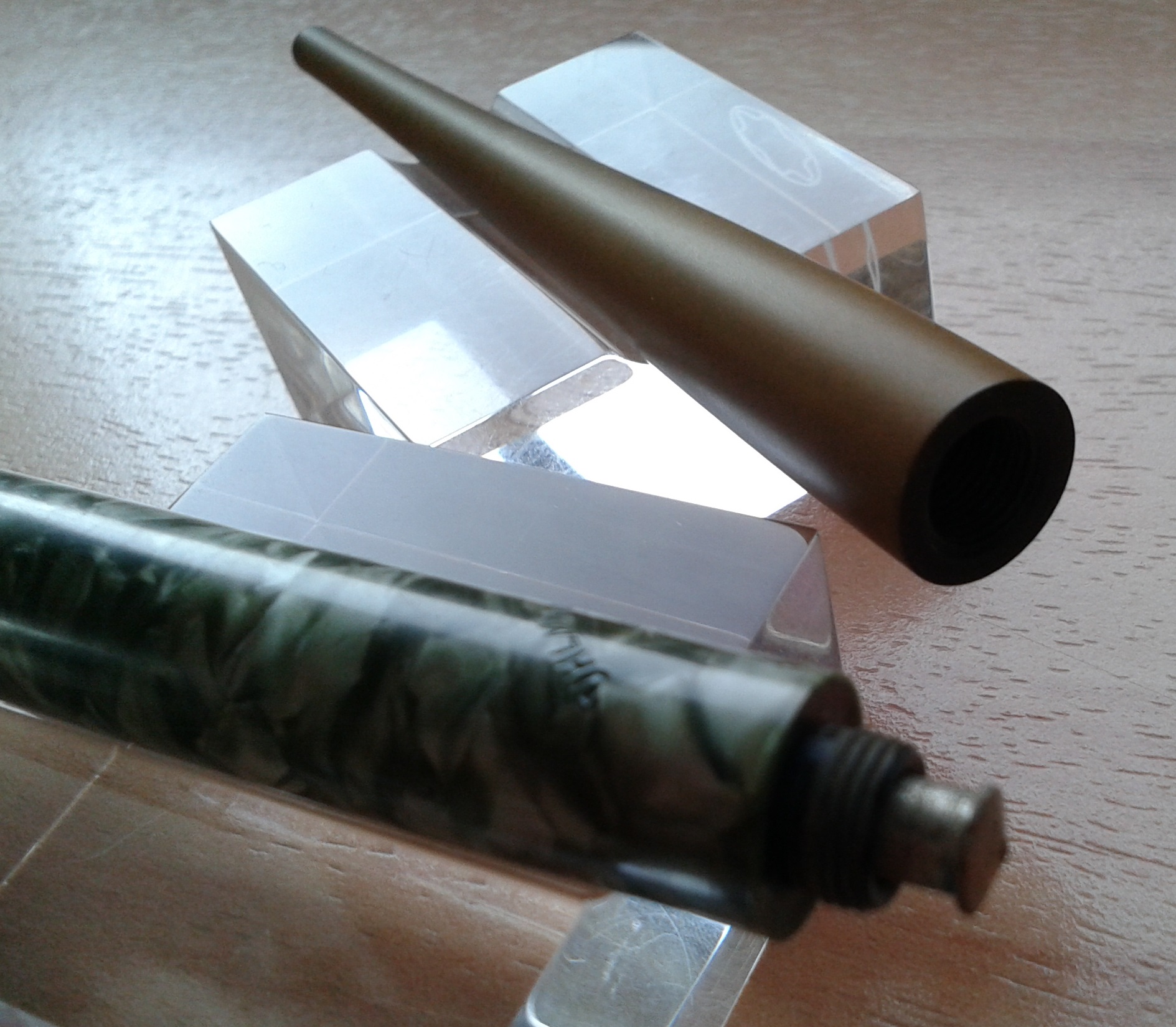 D'altra parte, osservandola meglio, si nota chiaramente l'assenza della filettatura sulla quale avvitare il cappuccio. Il che mi suggerisce che possa trattarsi di una versione da stiloforo, apparentemente ancora non documentata né su fountainpen e forum analoghi, né sulla "bibbia" della Jacopini. Se fosse vera questa ipotesi, il recupero sarebbe più facile.