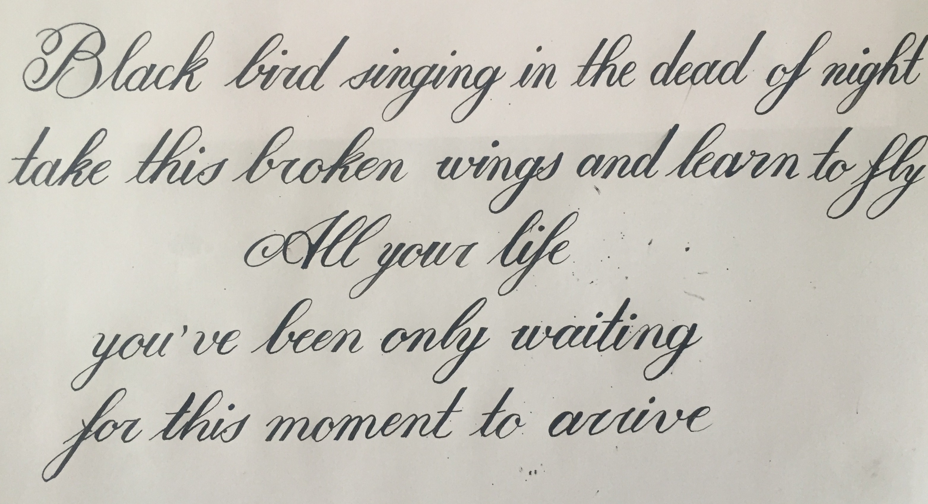 Non avere fretta e segui il testo della Winters anche copiando pedissequamente: scegli una parola a caso e copiala, copiala finché spaziature e proporzioni non saranno identiche a quelle originali. Stai andando molto bene ma il buon risultato rischia di essere inficiato dall'incostanza delle spaziature che nel Corsivo Inglese è fondamentale (ogni cosa lo è in realtà, nel Corsivo Inglese...ogni minimo errore si nota immediatamente, perciò è considerato uno Stile molto difficile).