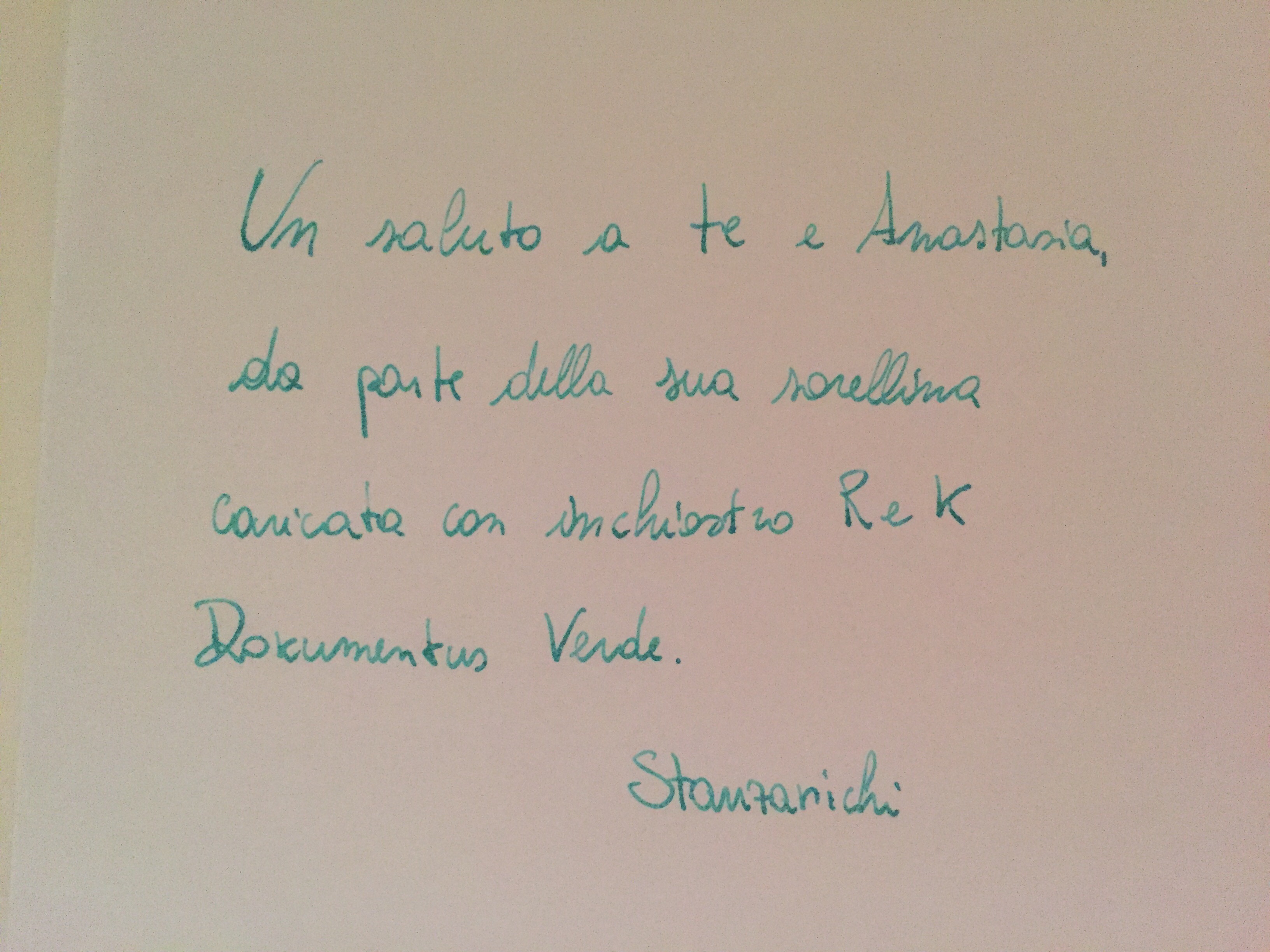 Infine ricambio il saluto a te ed a Anastasia, che deve essere proprio brava e non permalosa: io, al posto suo, marchiata come un manzo, avrei fatto un po' di storie.
