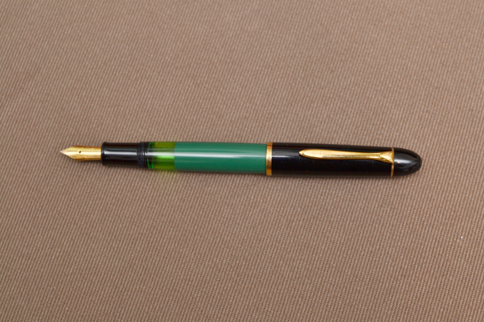 "Lo stesso anno venne introdotto anche il modello per studenti 120, una versione meno rifinita della 140 con pennino in acciaio nelle sole misure F, B e M e prodotta esclusivamente in plastica verde con cappuccio e fondello neri."
