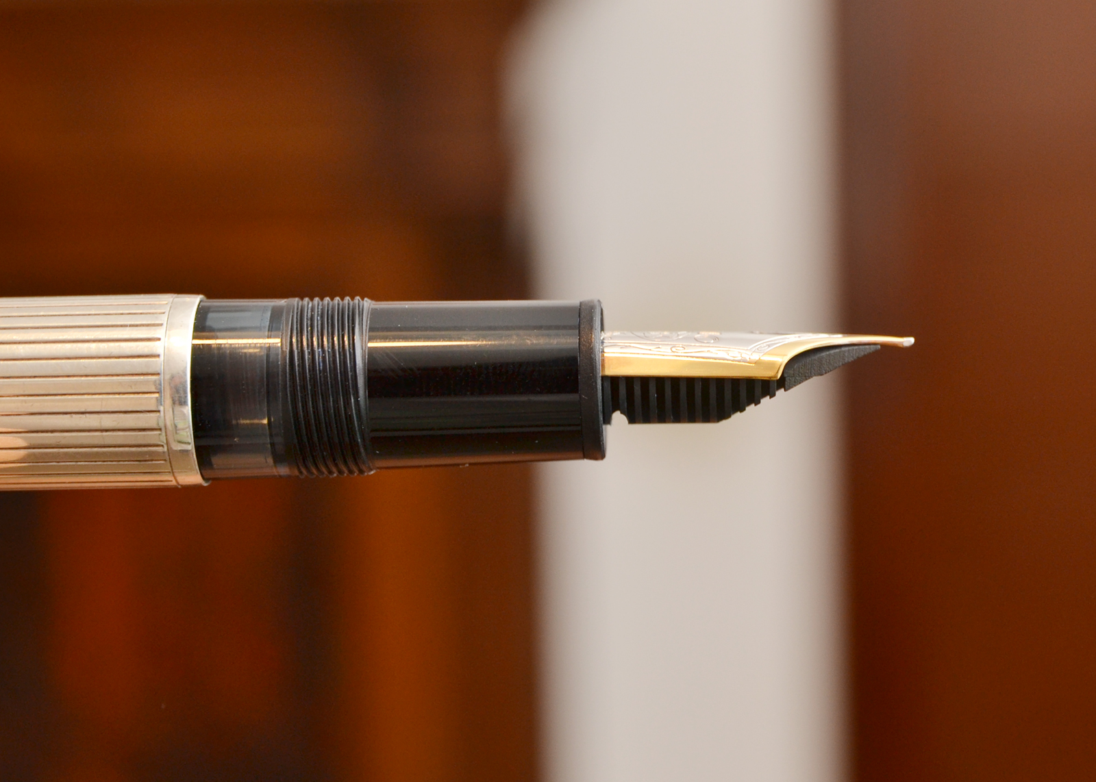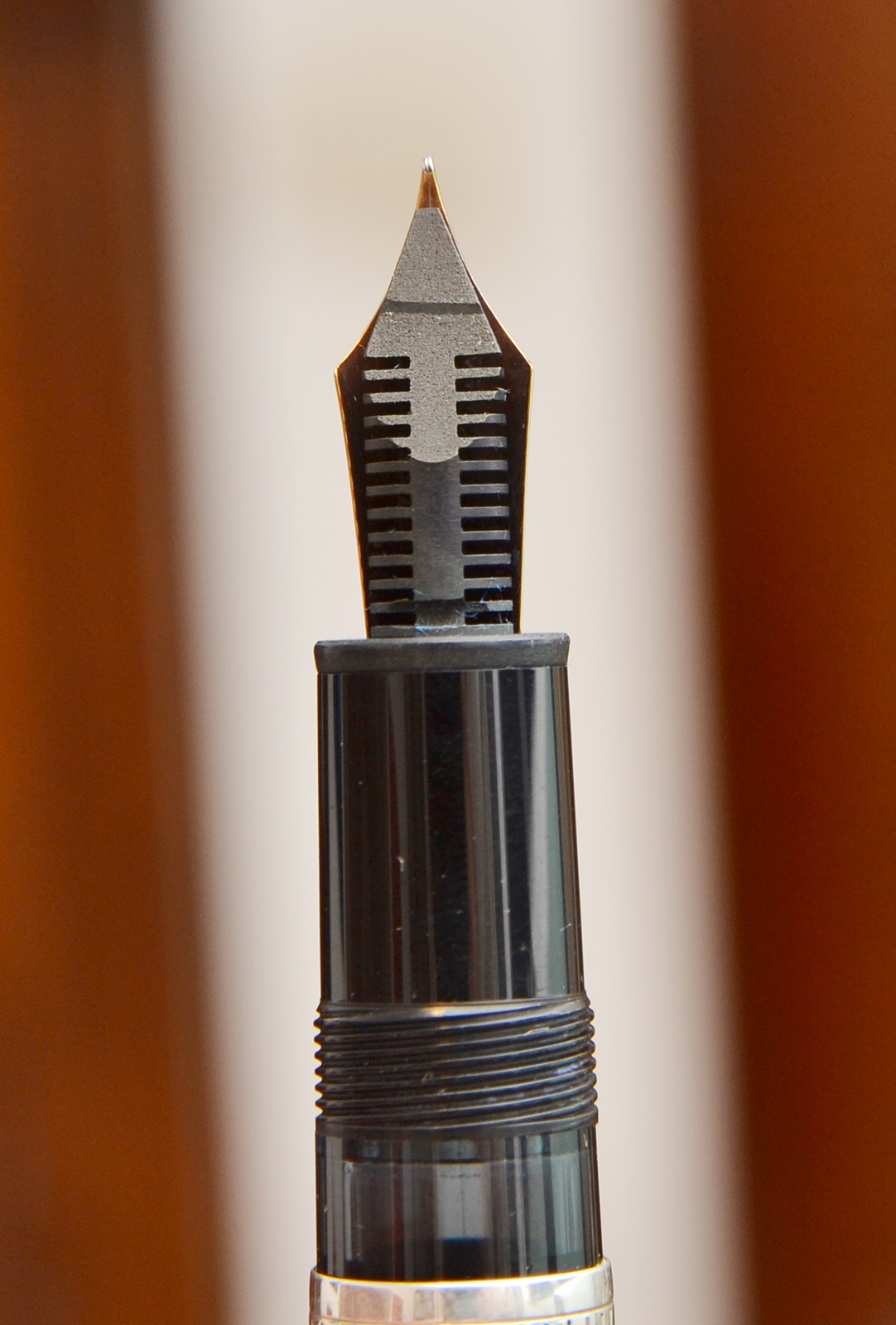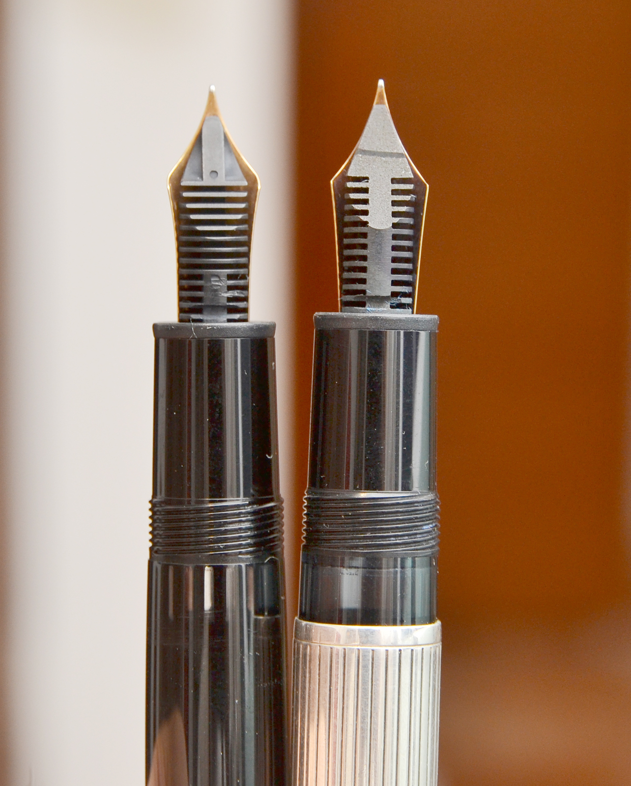 L' alimentatore è in ebanite e non in materiale plastico, anche la finestra della visione dell'inchiostro è diversa, non ha le righe in verticale, il pennino è 18Kt
