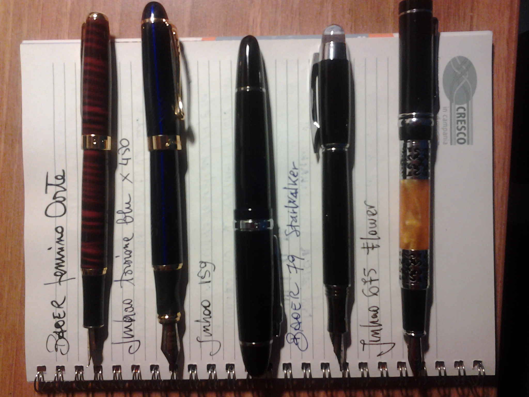 le 3 lamy e la parker ormai mi accompagnano con molto piacere ogni giorno da qualche mese mentre la jinhao, purtroppo, penso verrà pulita e riposta.