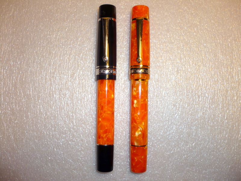 A prima vista le penne sono identiche, è infatti come vdrem molte parti sono itercambiabili, la sola differenza sostanziale che si nota è la finestrella che permette di visualizzare il livello dell'inchiostro. La cosa strana è che i cappucci sono intercambiabili ma leggermente diversi, quello della stantuffo è 2 mm più corto, e questo permette di visualizzare la finestra del livello inchiostro, infatti se vengono scambiati la finestra sparisce...
