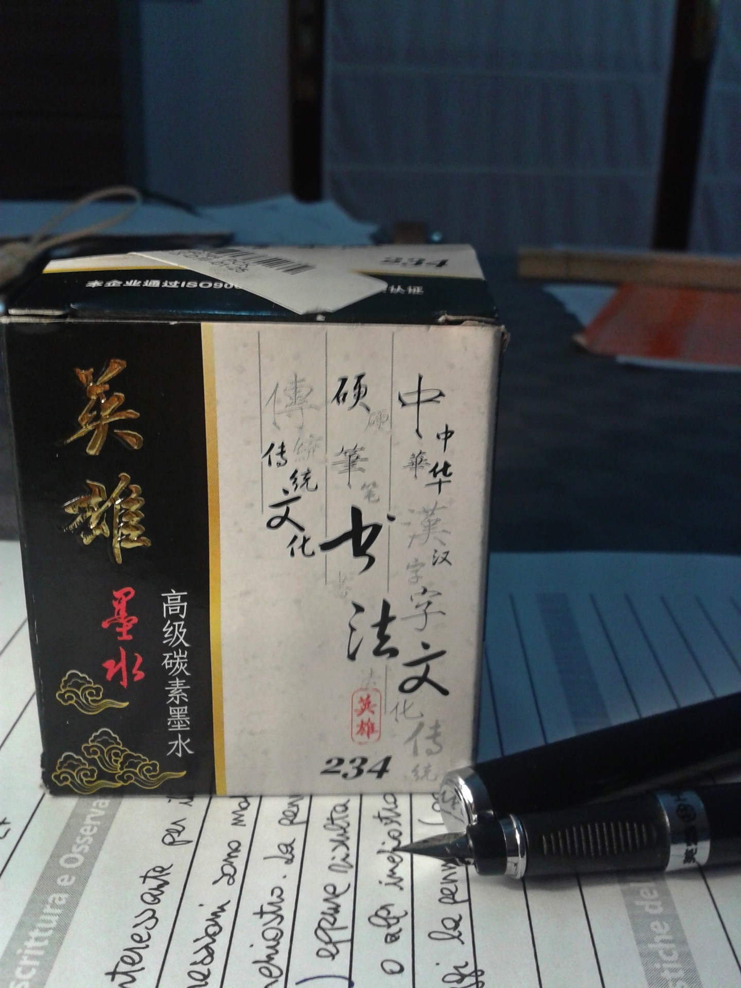 Anche se le mie penne sono tutte abbastanza economiche devo confessare che avevo un po di timore ad usarlo, quindi ho aspettato che arrivasse la penna ordinata apposta con funzione kamikaze: una Hero 9075 pagata la bellezza di € 0,01 spedizione compresa. In realtà l’inchiostro viene sconsigliato con penne dal tratto molto sottile e invece questa 9075 è veramente super fine. Ciò nonostante la scrittura è molto scorrevole. Non posso ancora affermare se il merito è dell’inchiostro o della penna.