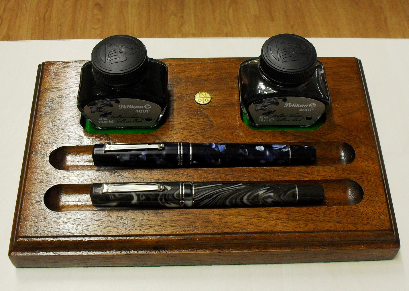 Le mie due "The Journal", finalmente riparate e ben regolate, sul vassoio in noce prodotto da Onoto. Le compagne di oggi.