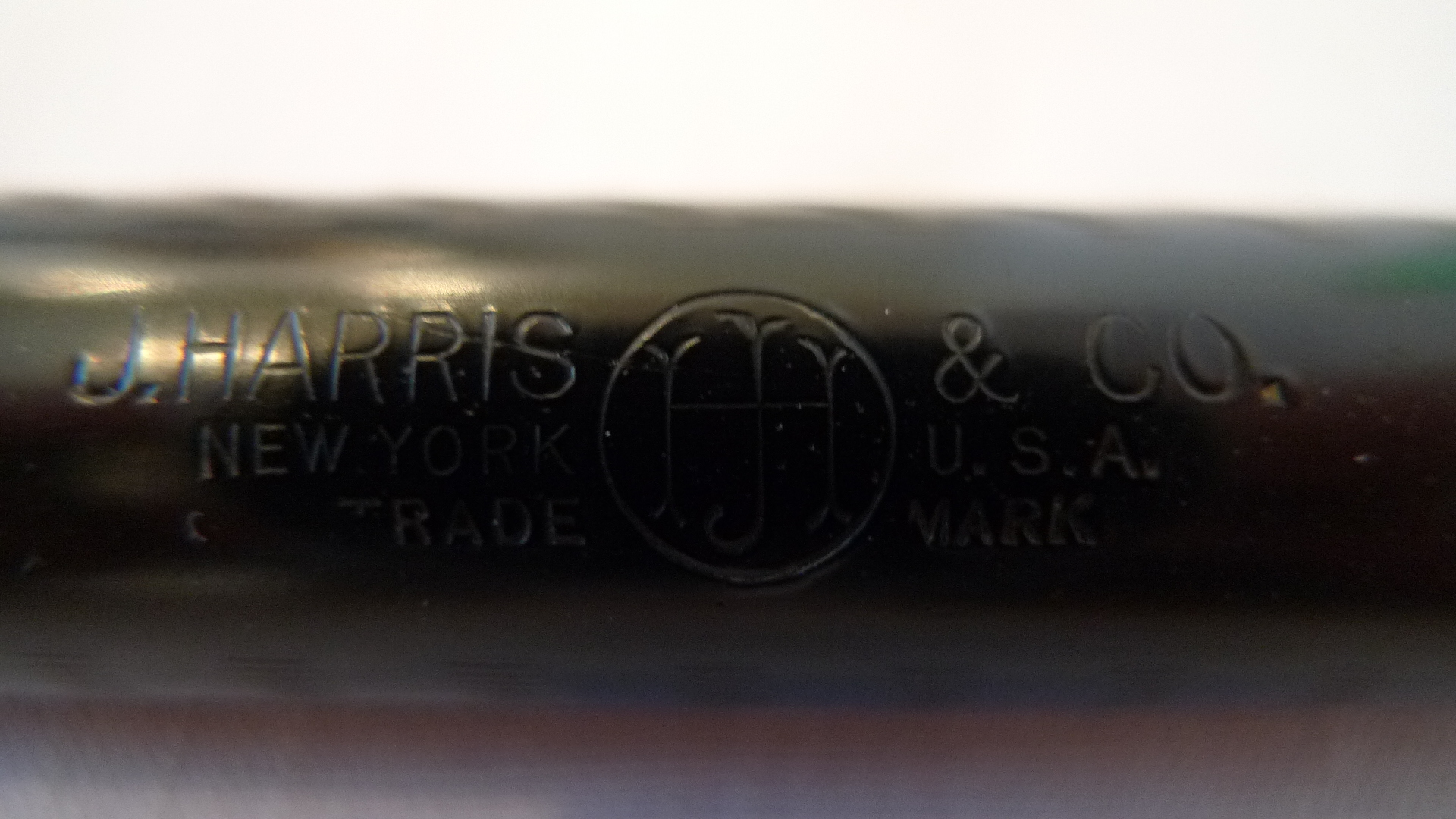 Per quanto ne so, J. Harris & Co era una ditta americana, di New York, fondata da Jacob Harris ed Emanuel Harris, fra le prime del settore negli Stati Uniti d’America. La penna è ovviamente in ebanite e certamente successiva al 1912, anno che vide l’introduzione del sistema di caricamento a levetta da parte di Sheaffer’s.