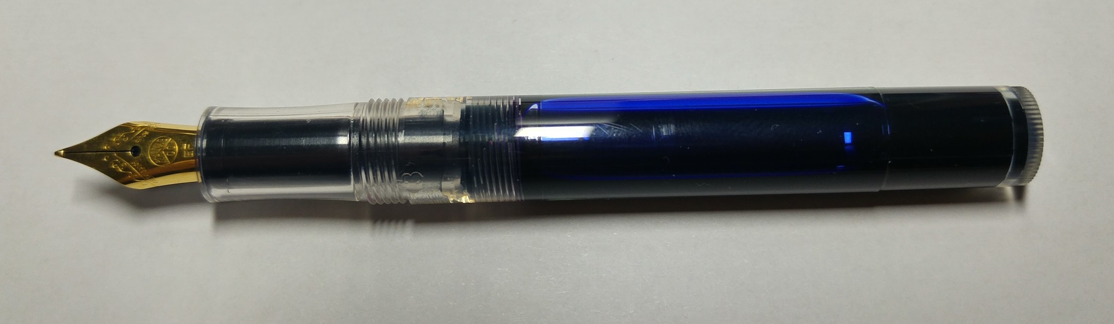 Ebbene seguendo un po' le guide del forum, mi sono procurato del grasso al silicone con cui ho cosparso la filettatura della sezione, per poi caricare all'interno del corpo il classico Pelikan Blue.