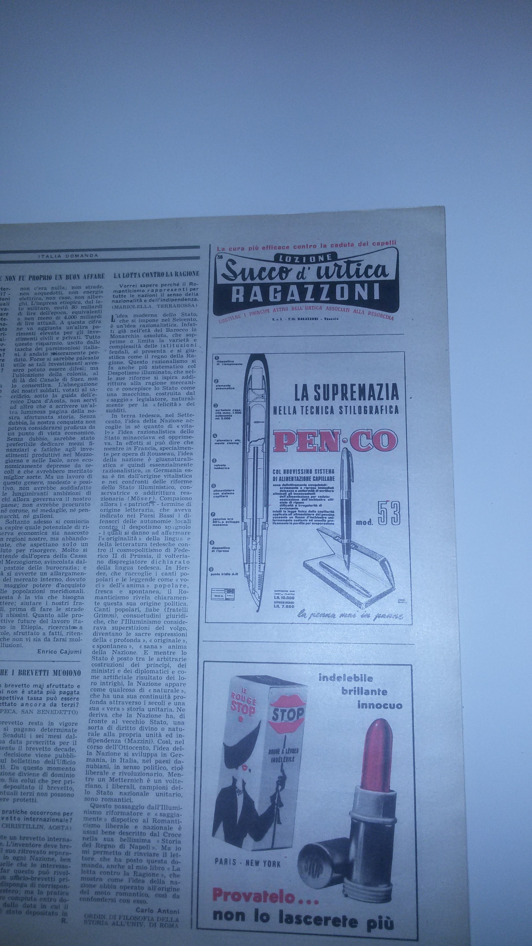 Sfogliandolo, ho trovato questa interessante pubblicità della Pen-Co, azienda di Sandrigo (Vi) fondata nel 1923 e che cessò l'attività ( a quanto m i risulta nel 1957). L'azienda dava lavoro a molti dipendenti ed ebbe comunque un periodo abbastanza fiorente, relativamente alla produzione.