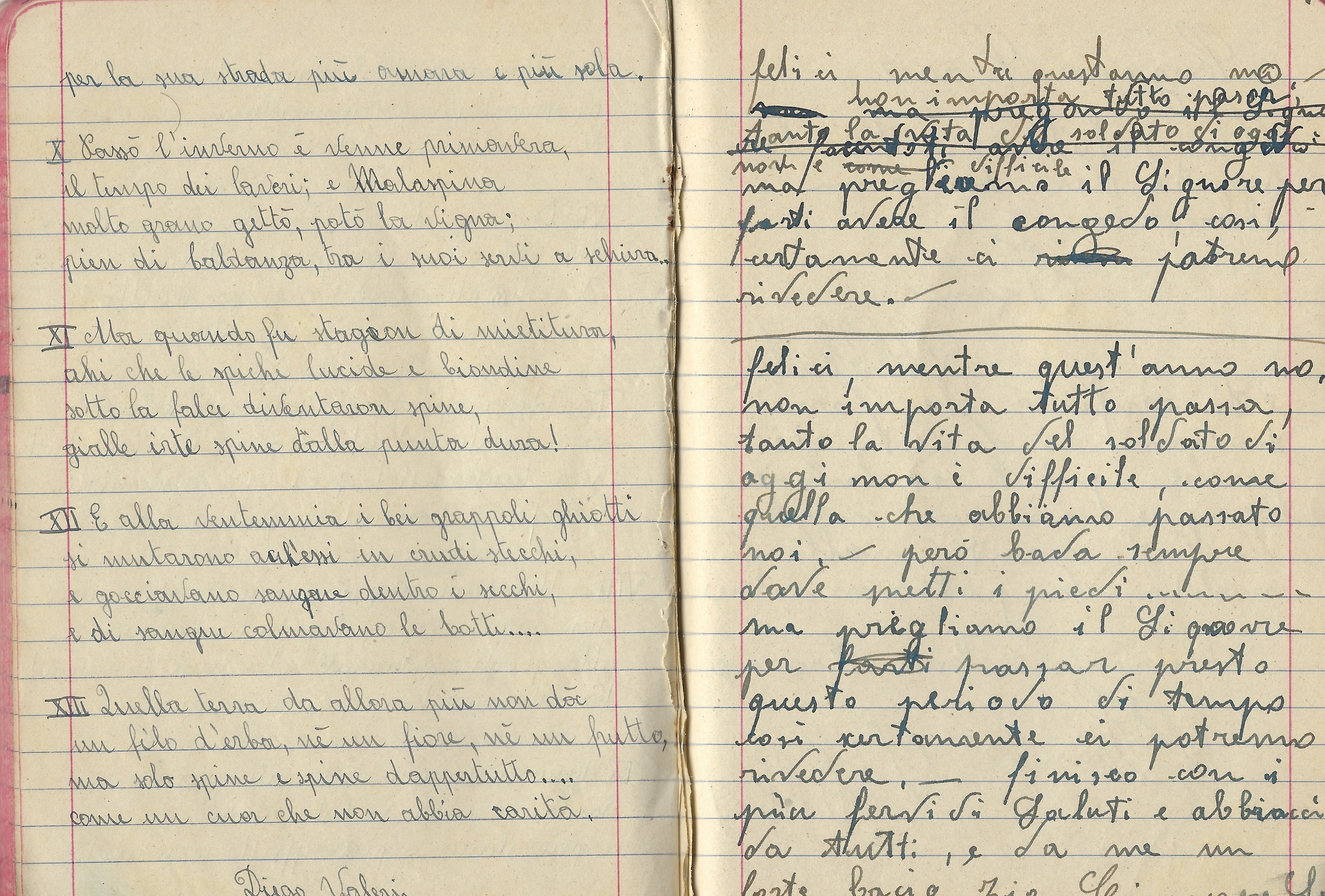 Dulcis in fundo, fogli strappati preannunciano un salto in avanti di diversi anni. Uno zio (che porta il nome del padre del nostro piccolo autore) prepara in brutta copia una lettera al nipote per lenire la nostalgia di un soldato di leva. "Tanto la vita del soldato di oggi non è difficile come quella che abbiamo passato noi", il tenero tentativo dello scrivente di rendere la separazione meno dolorosa per sè e per il giovane soldato.