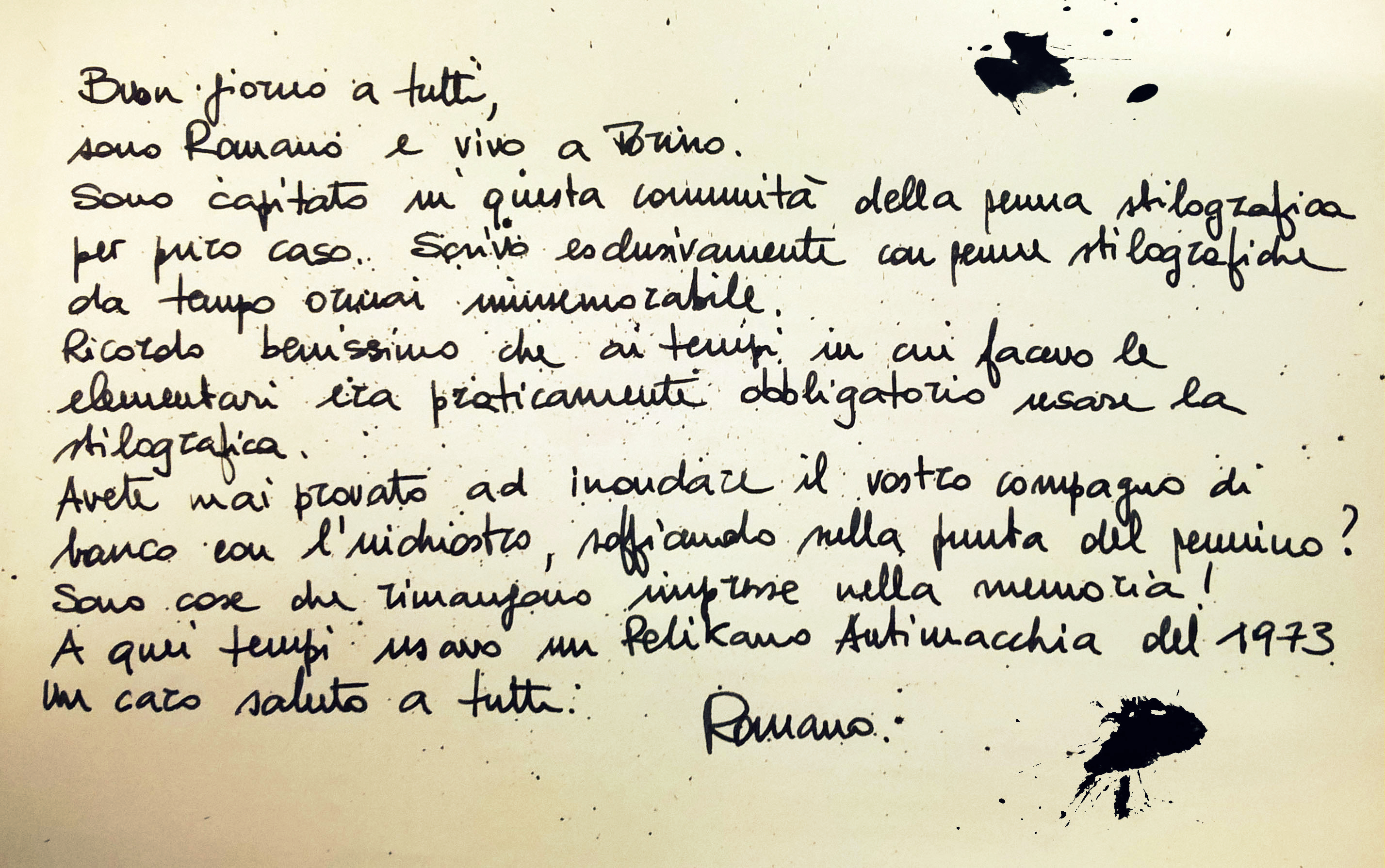 un caloroso benvenuto, e ... purtroppo ai miei tempi la maestra ci impose la Bic, e alla stilografica ci sono arrivato solo dopo la laurea, magari ce le avessero imposte (se penso al tempo perso con quelle pennacce).