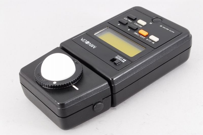 - Minolta Autometer III, usato pari al nuovo, 1 anno di garanzia, completo di astuccio ed accessori aggiuntivi: Spot Mask II, Flat Diffuser, Accessorio misurazione spot 1°.