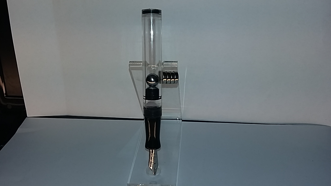 La cosa interessante è che la sfera può girare di 360 gradi sul pistone, così quando si avvicina il magnete motrice ( in qualsiasi posizione sulla circonferenza della penna ) il magnetismo della sfera ( nord /sud ) si orienta in automatico con l'altro magnete.