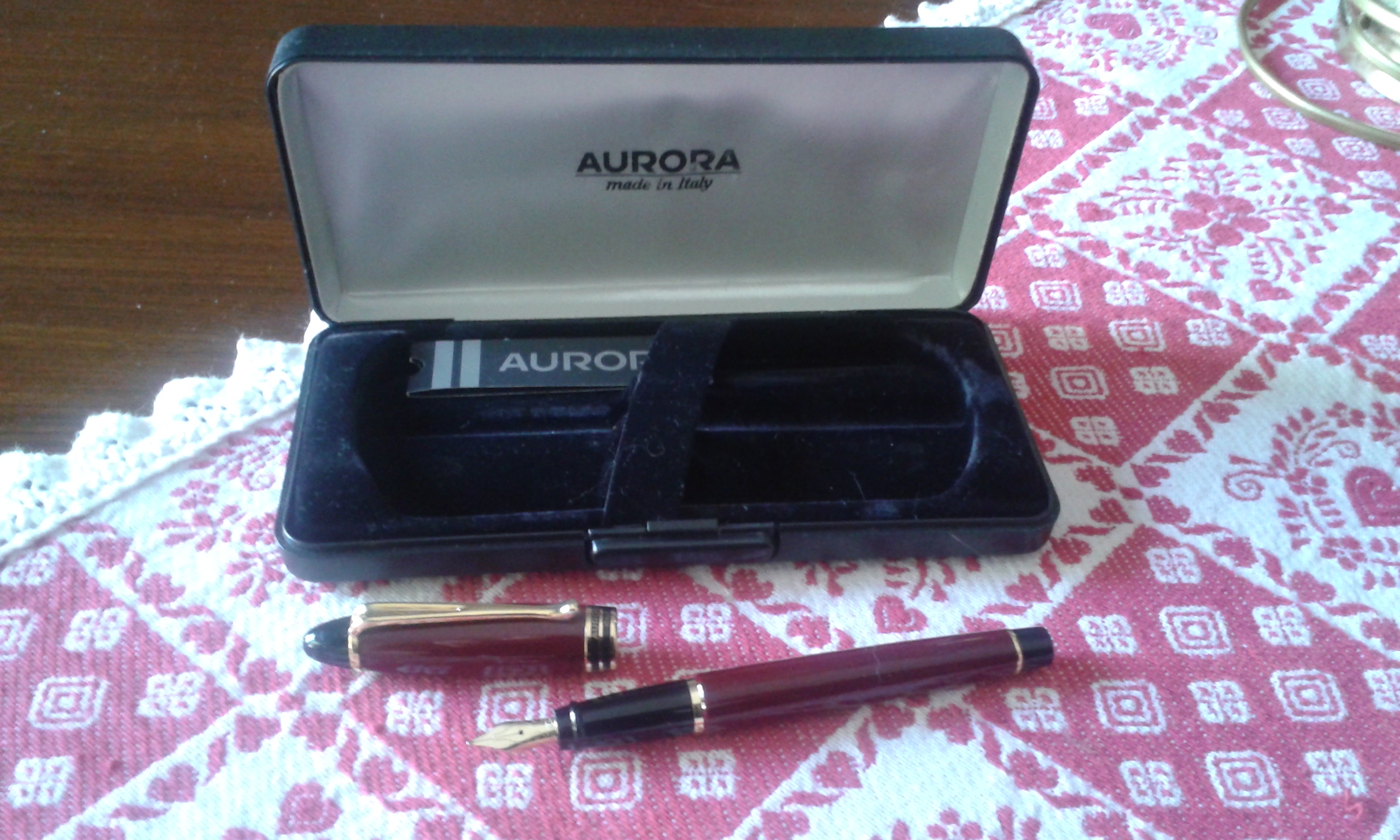 Ecco gli ultimi ritrovamenti del mese di aprile. una Aurora rientrante laminata oro pubblicitaria "Omaggio della Acqua Sila", pennino in acciaio non originale; Waterman 42, pennino oro originale, con scatola in ottime condizioni (per tutte e due le penne il sistema di caricamento deve essere testato); Aurora Ypsilon, colore bordeaux, con scatola praticamente nuova; Parker 45 in acciaio in ottime condizioni; stilografica Ero carica a stantuffo, pennino dorato, in ottime condizioni; stiloforo Norex "Crosstank" ottime condizioni; e due scatole di cartucce Aurora ancora con inchiostro utilizzabile.