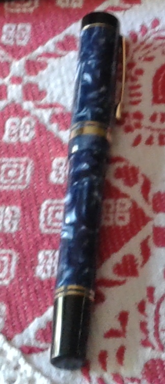 E' la versione marmorizzata blu, esattamente il colore che ha postato Fockerwulf, con la sola differenza che la mia e' la versione anni '90, quindi ha la clip leggermente piu' lunga e le verette sul cappuccio e sul corpo penna lievemente bombate.