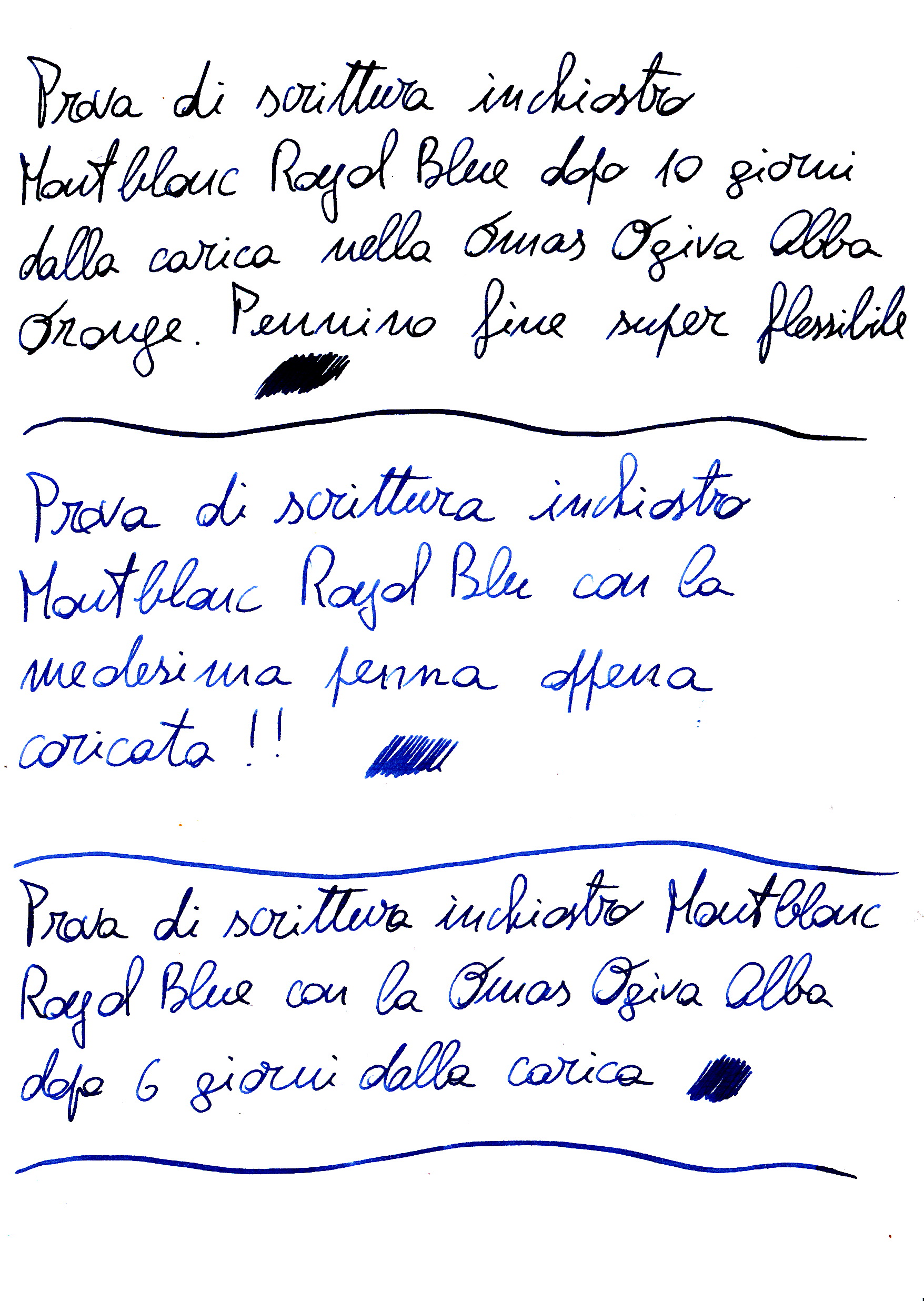 Buongiorno a tutti, ho sempre notato, usando la mia Omas Ogiva Alba Orange un cambio di colore nell' inchiostro man mano che i giorni passavano. Ho così provato a scrivere con la penna appena caricata, dopo una settimana e dopo dieci giorni. È estremamente evidente come cambi il colore, anche ad occhio si nota che l' inchiostro nel serbatoio cala. Vi è mai capitata una evaporazione così evidente e veloce? Per me la resina di cotone ha toppato alla grande! :D