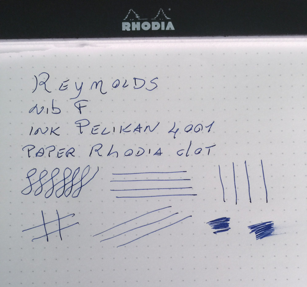 Un bagno di pulizia completo ha permesso di poter iniziare scrivere con una nuova cartuccia blu Pelikan 4001 senza problemi, con un flusso regolare ma sicuramente non abbondante. Unica pecca la perdita di doratura sulla clip.