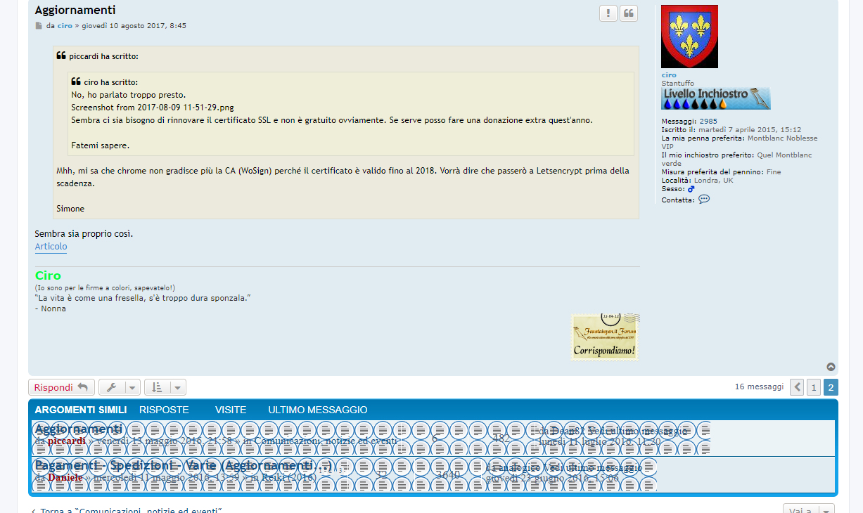 Mhh, mi sa che chrome non gradisce più la CA (WoSign) perché il certificato è valido fino al 2018. Vorrà dire che passerò a Letsencrypt prima della scadenza.