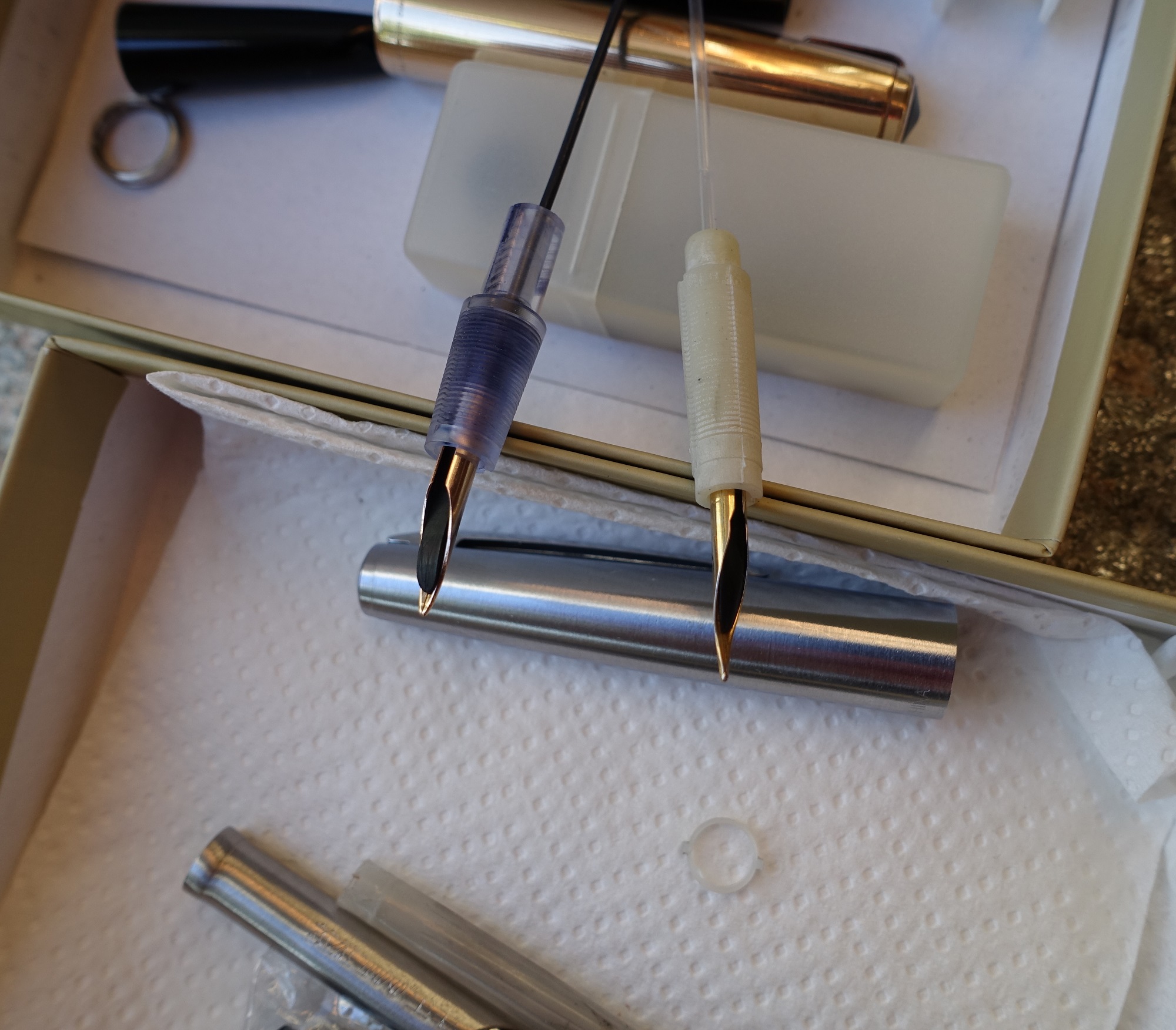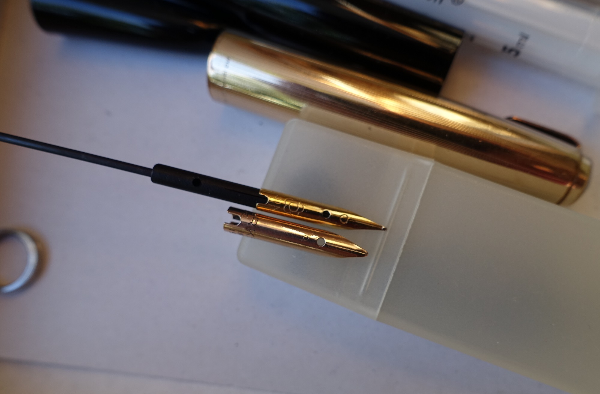 In pratica sono venuto in possesso di una Parker 51, ispezionandola mi sono accorto che ha il pennino sbeccato, manca una parte della punta, ora mi sto chiedendo se è ancora possibile trovare ricambi originali oppure ricambi alternativi, o qualche adattamento