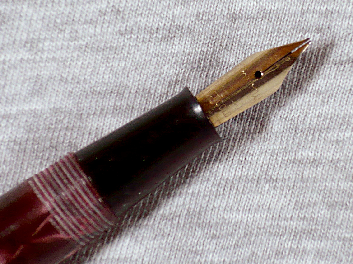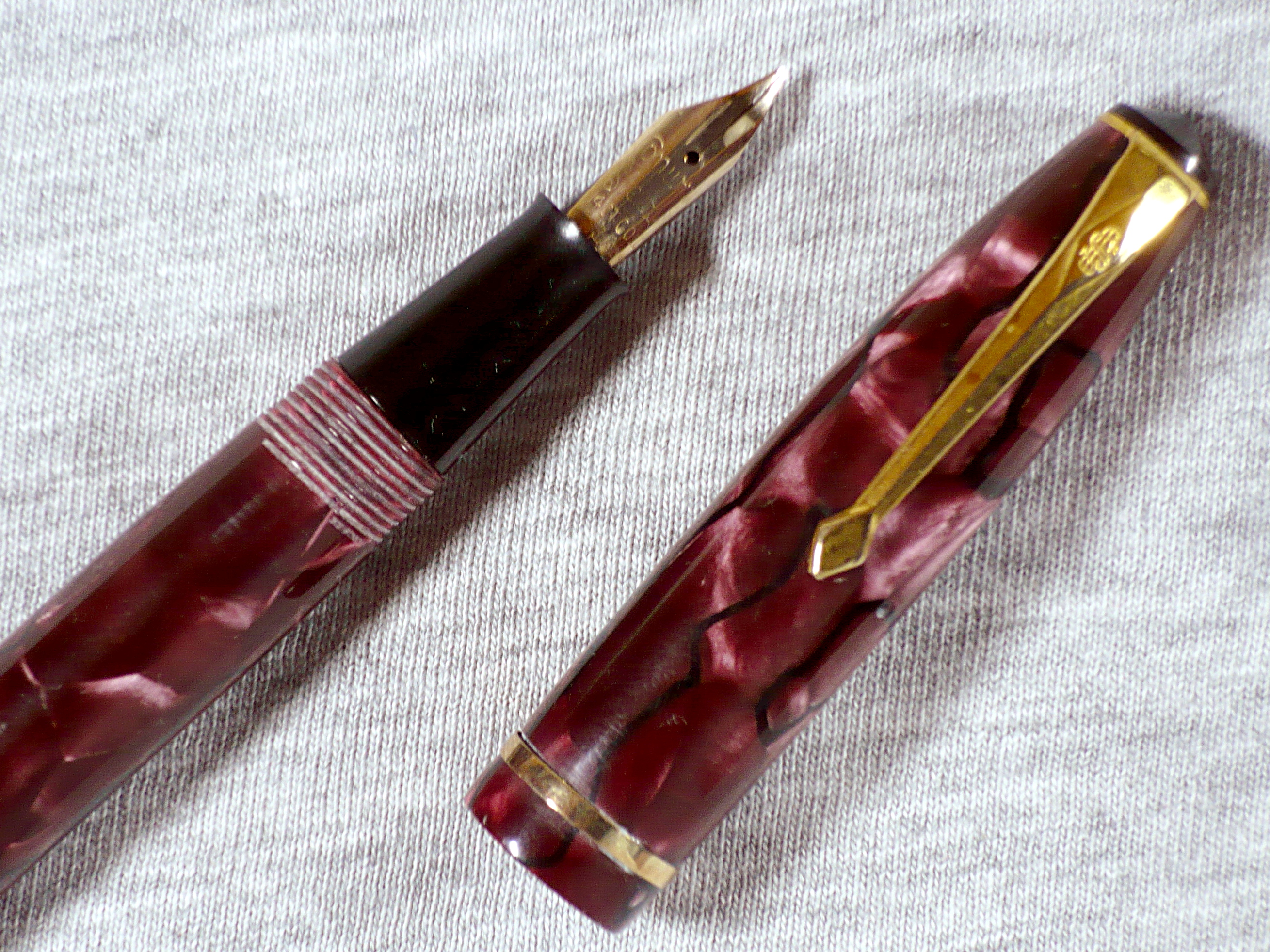 Il secondo modo veniva usato per quelle in celluloide striata, o su quelle con disegno "herringbone": siccome il disegno è longitudinale lungo il fusto della penna anche la linea di giunzione è messa nel senso della lunghezza della penna (ma una penna con disegni così regolari non può comunque essere in caseina)