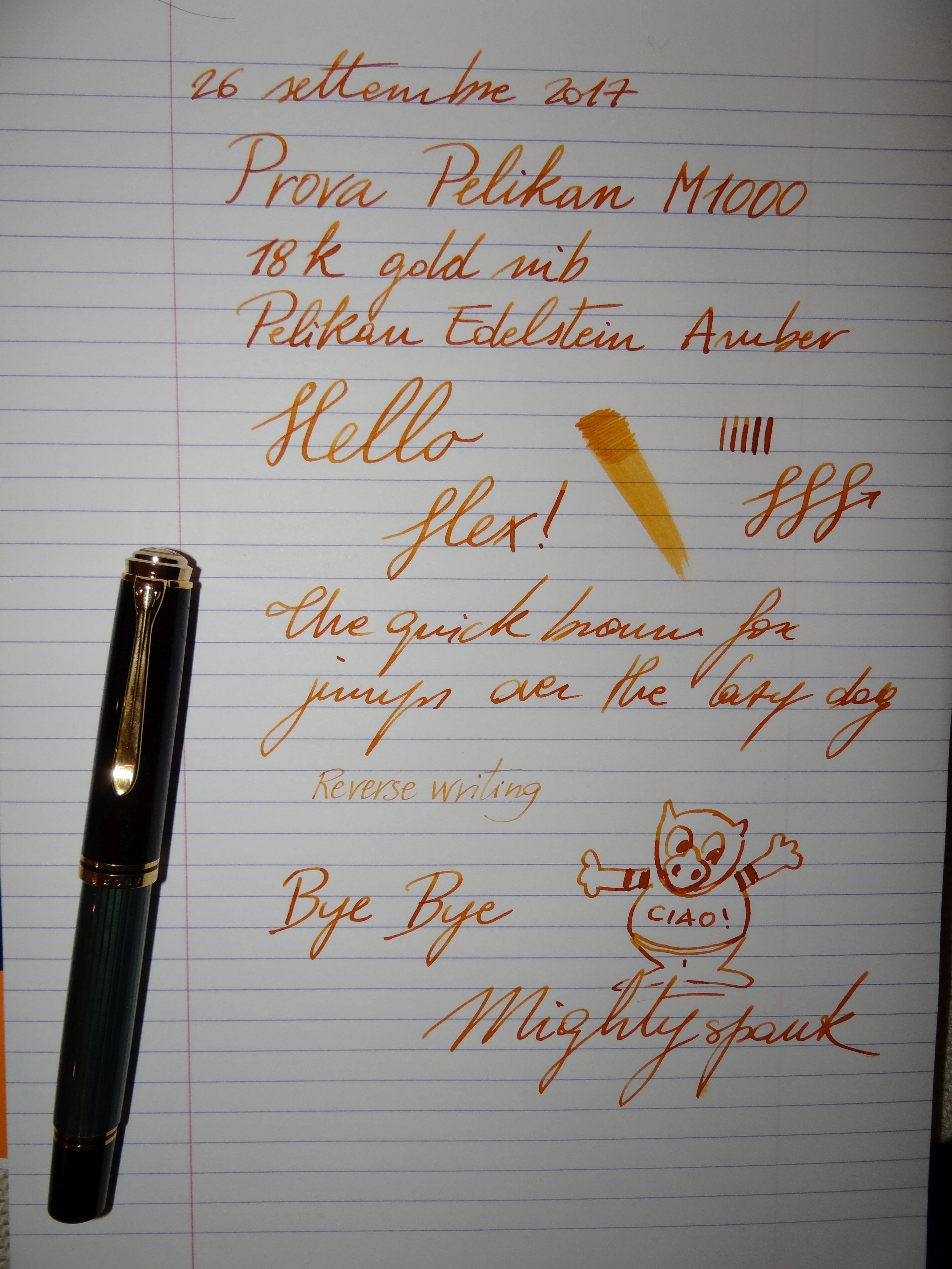 Io non ho la 1000, ma devo dire che è una gran penna che trasmette robustezza e bellezza, soprattutto nei colori classici Pelikan, verde a strisce /nero.