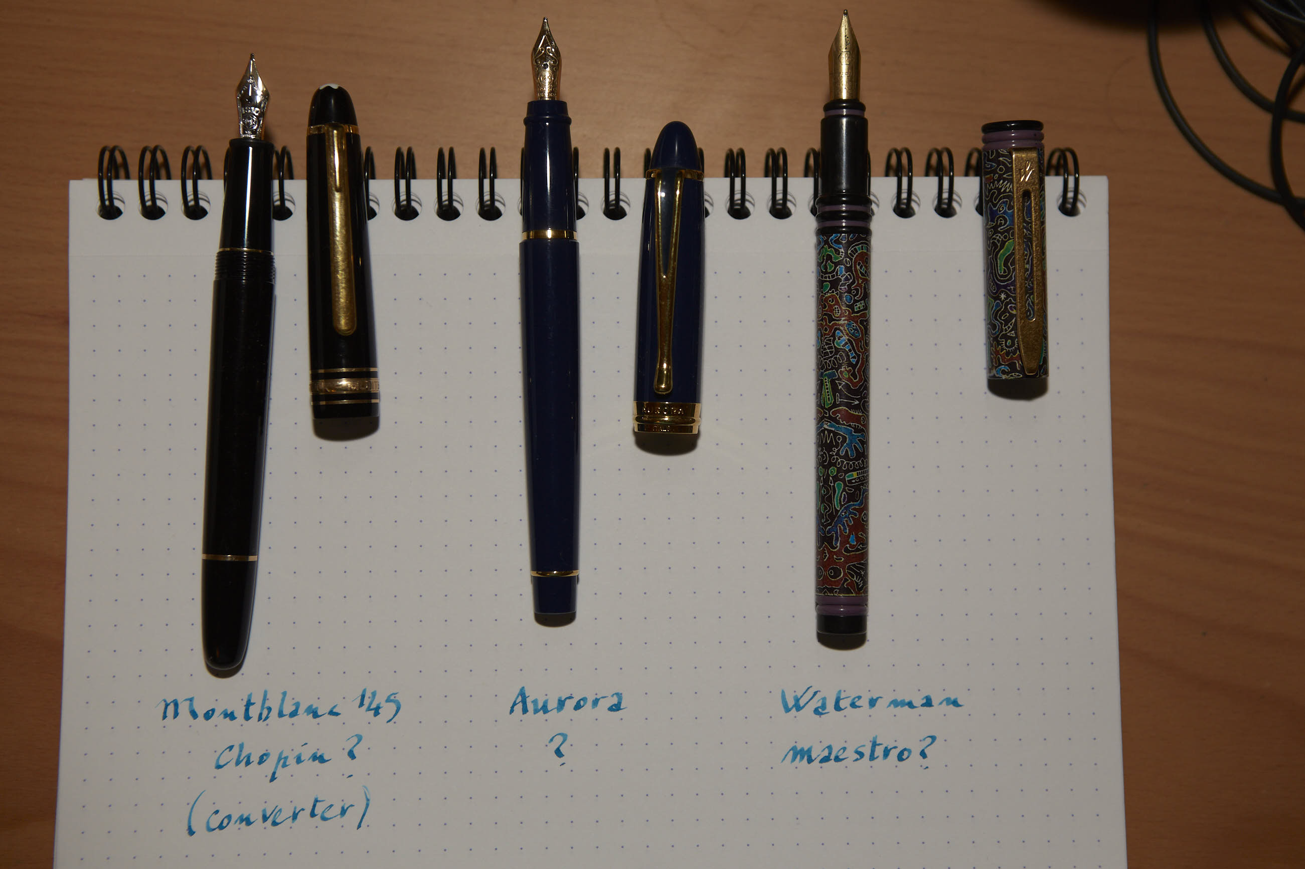 Identificazione di tre penne: Montblanc, Aurora e Waterman
