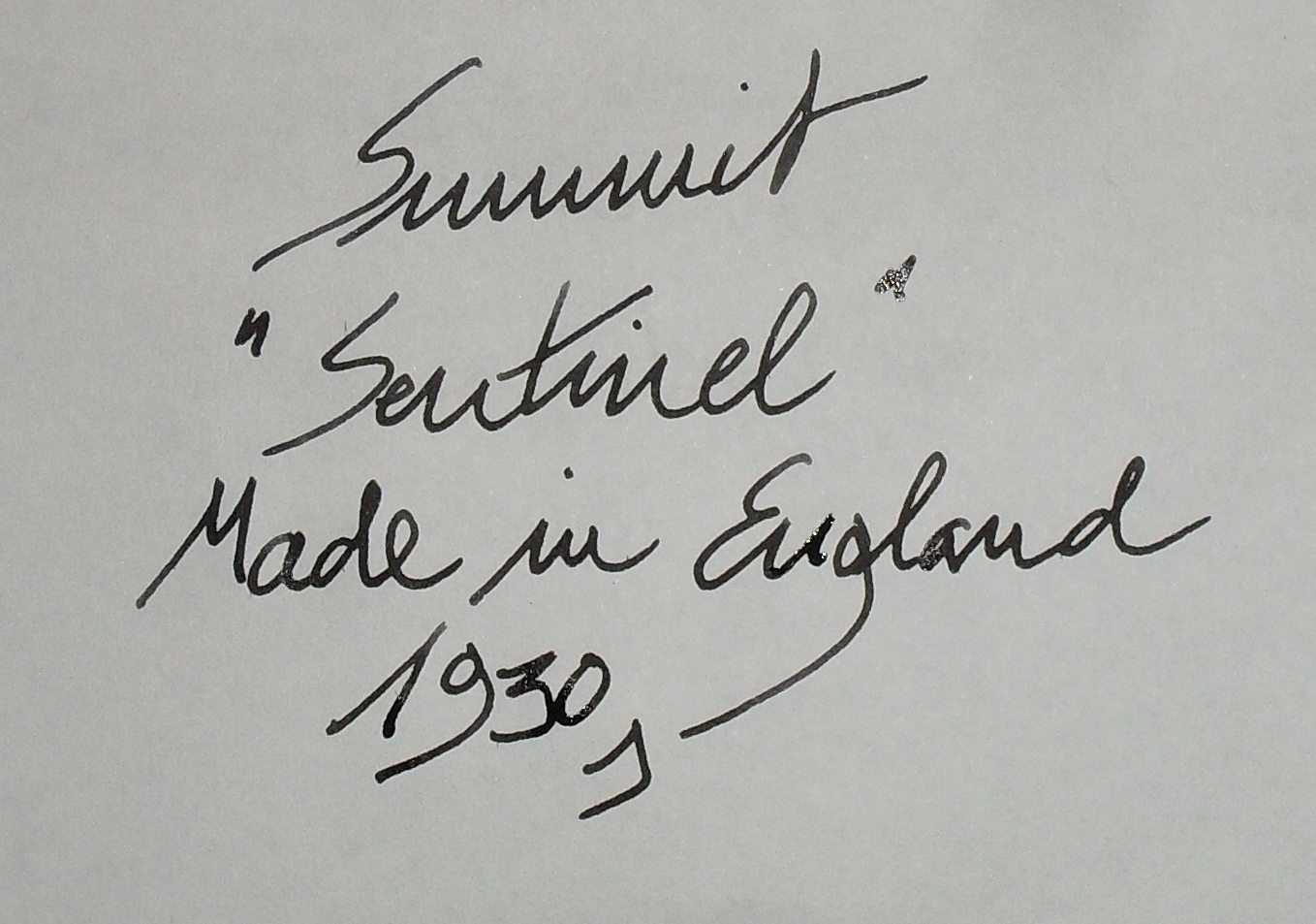 Le scritte impresse sul corpo (Summit - British unbreakable make - Sentinel) riprendono, almeno in parte, la disposizione, il contenuto e lo stile delle Summit dei primi anni Trenta, destando un dubbio: è possibile che la Sentinel abbia di fatto preceduto la S.175 ? Purtroppo, la mancanza di cataloghi e di avvisi pubblicitari del periodo non consente, per ora, di giungere ad una risposta certa.