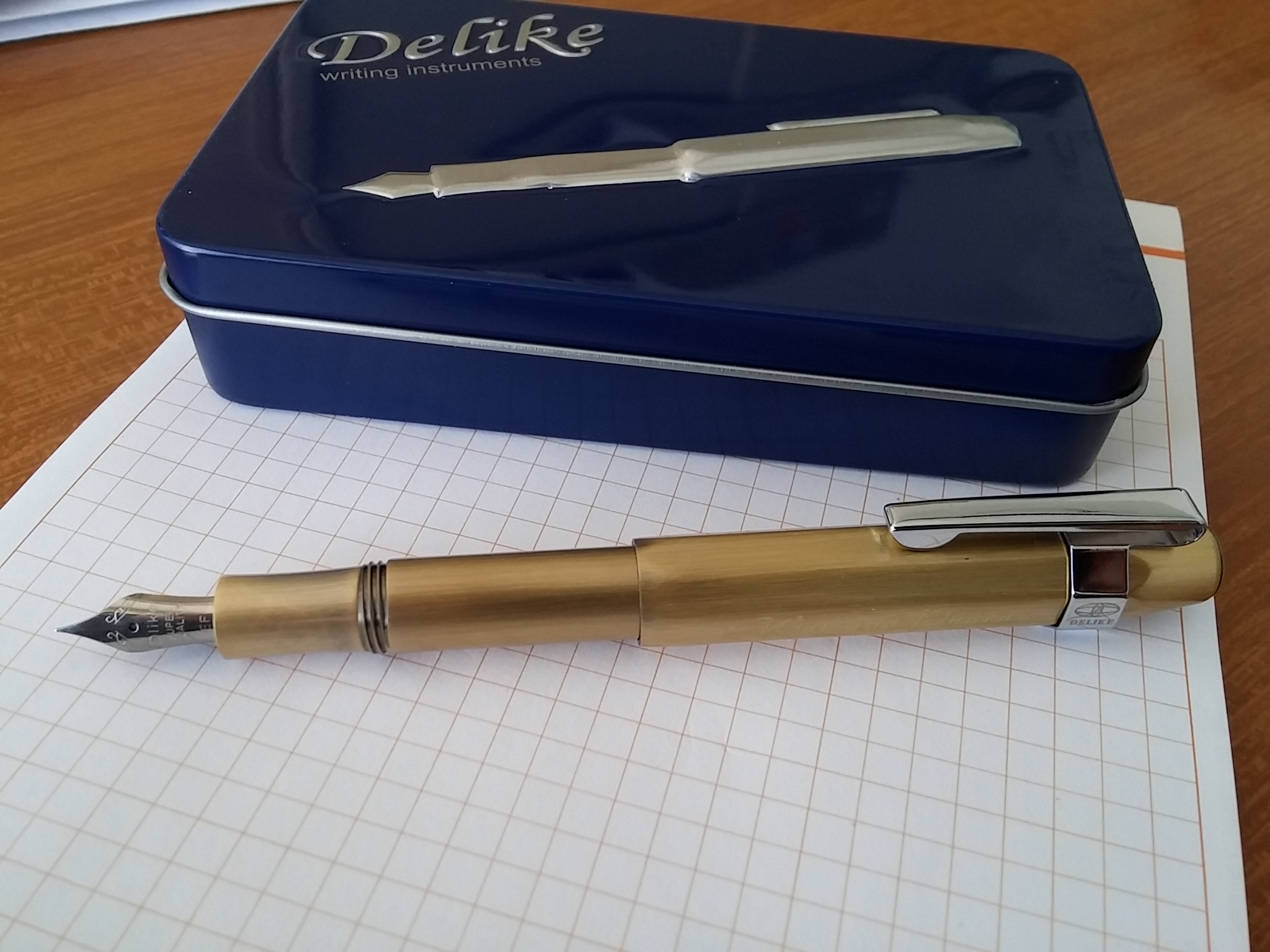 La penna del giorno è una Delike Alpha, il clone economico della Kaweco Sport Brass (io l'ho pagata meno di 9 euro compresa spedizione con raccomandata tracciabile).