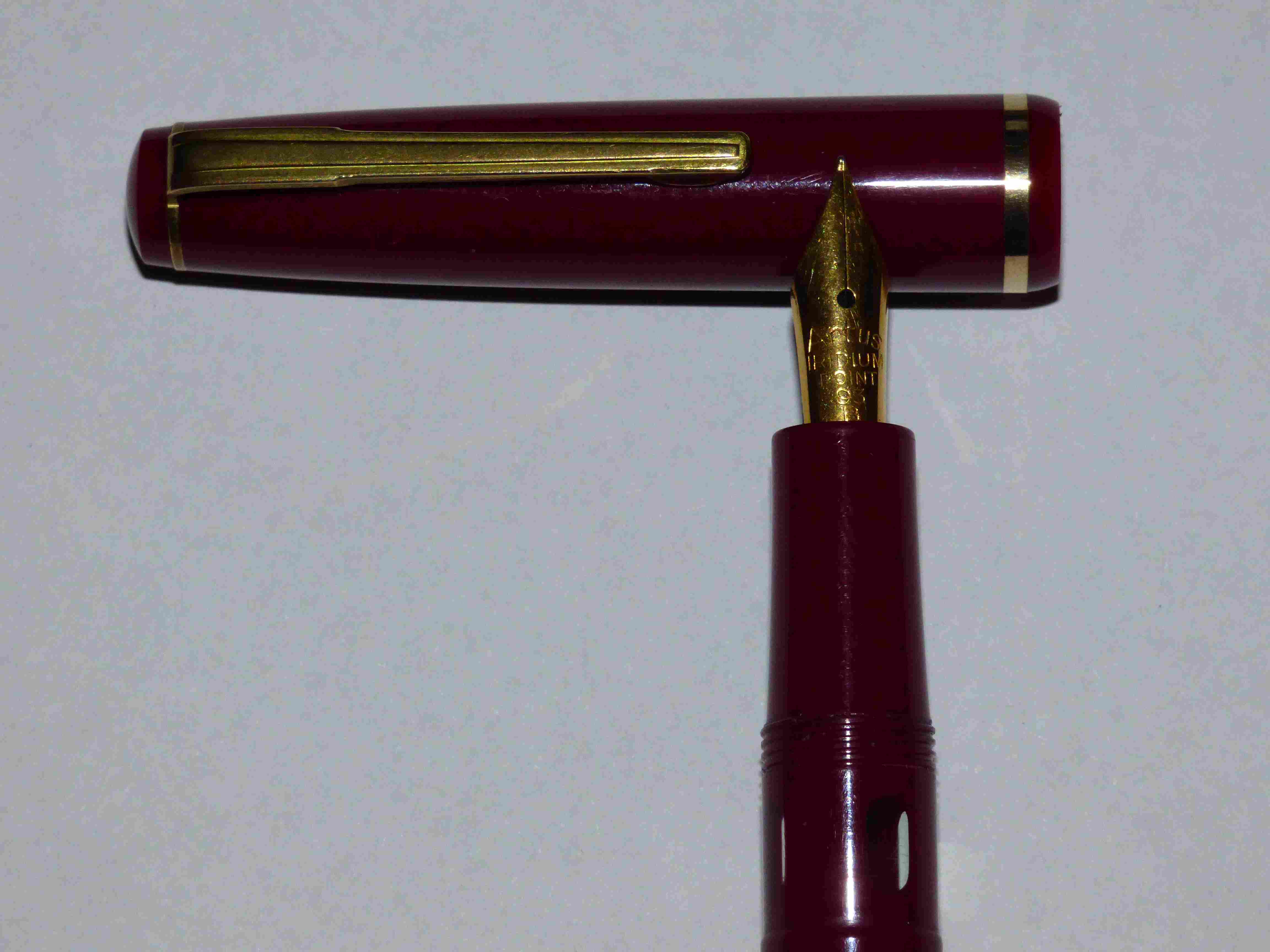 Presento la mia Artus 23 trovata in un mercatino come quasi tutte le stilo che possiedo, in plastica di colore rosso con finiture placcate oro, in ottime condizioni e funzionante, il sistema di caricamento dell'inchiostro e a stantuffo svitando il fondello, il pennino in acciaio placcato oro.
