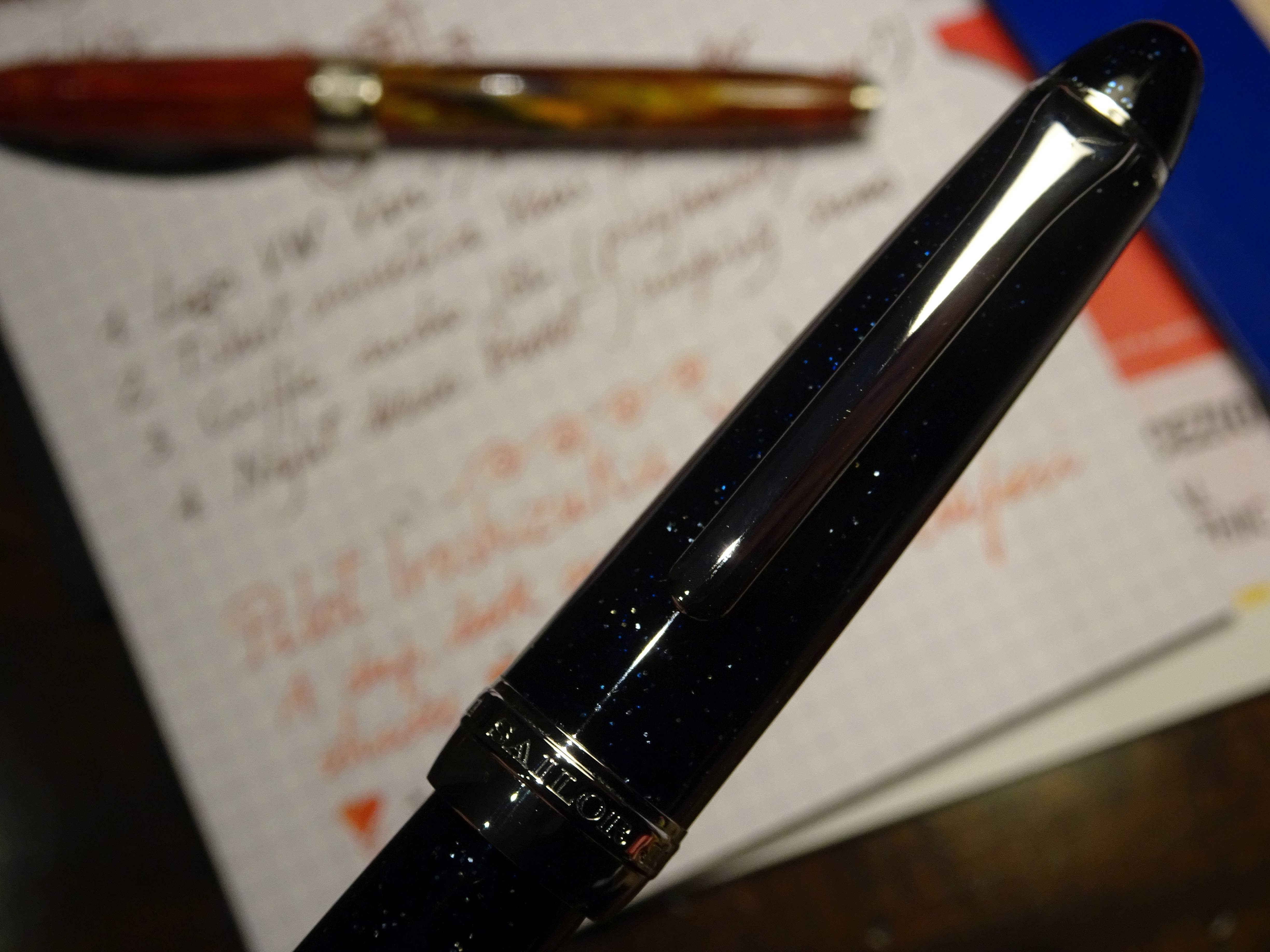 Io ho la Shikiori, che monta lo stesso pennino ma dorato. Lo adoro, semplicemente, ho quello F. Flusso giusto, scrive sempre e per me lo fa molto bene. Ho anche la Profit Casual che monta lo stesso pennino ma è EF. E adoro pure quello. È difficile fare un extrafine così scorrevole, con M e B è più facile