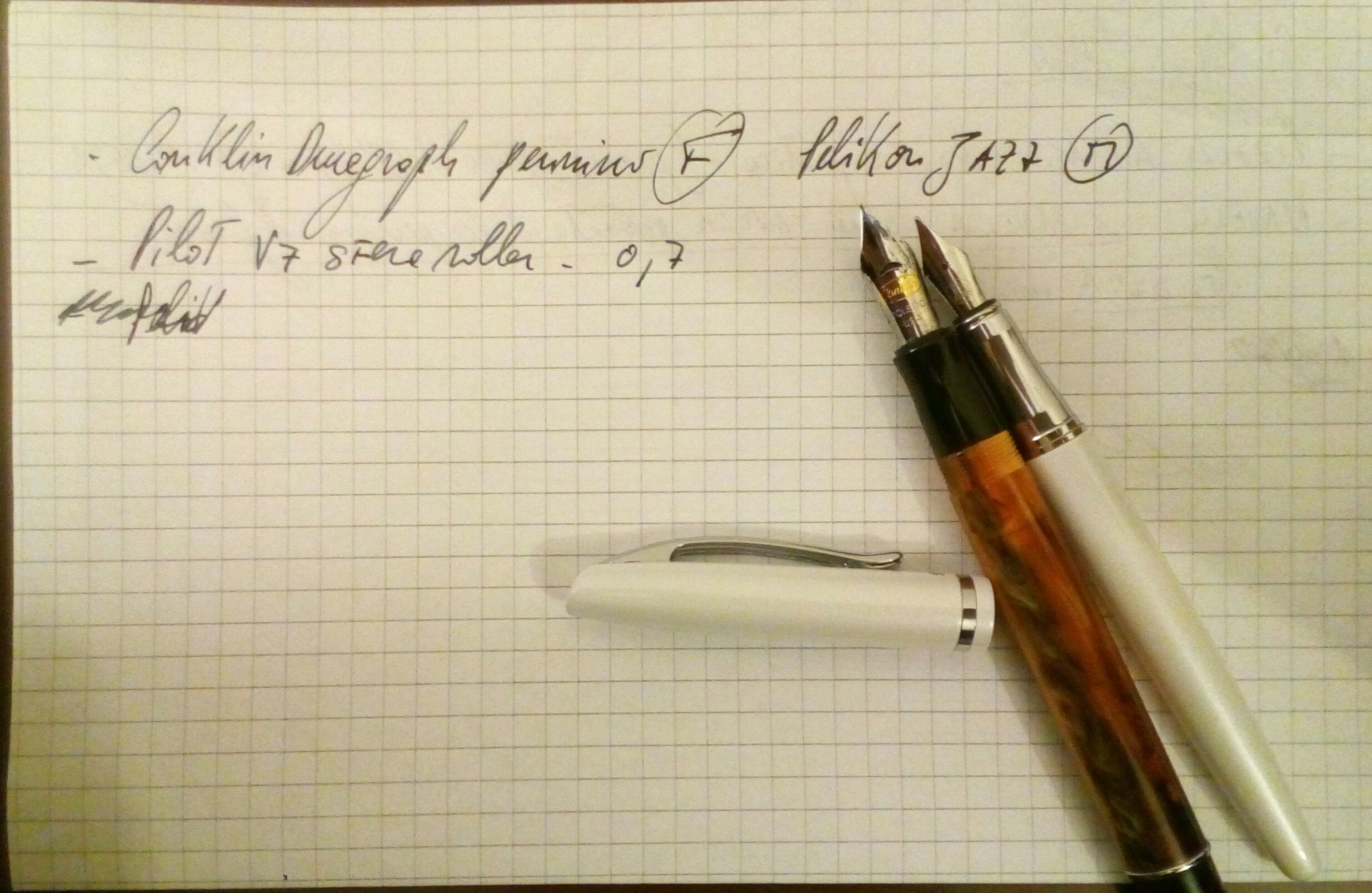 P.S. Anche se era abbastanza secco non mi dispiaceva il pennino della Conklin, ma per gusto personale i pennini della JoWo li trovo ottimi.