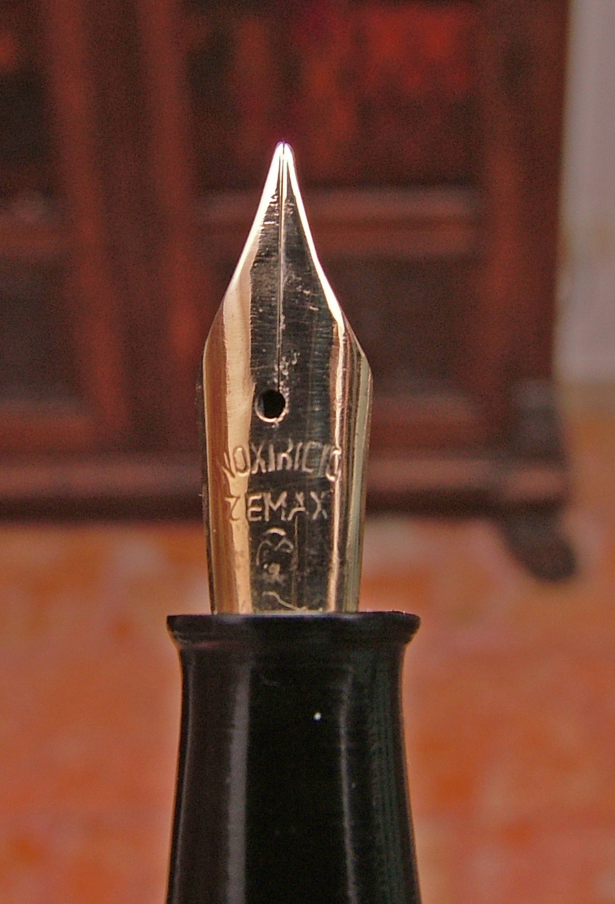 Questa Zemax è la copia della Omas Extra con carica a levetta, le uniche differenze sono gli anellini sul cappuccio due invece di tre, la testa del fondello e della testina che sono piatte e che guardandola bene è più cicciotta ed a dire la verità, in questo la preferisco alla Extra.
