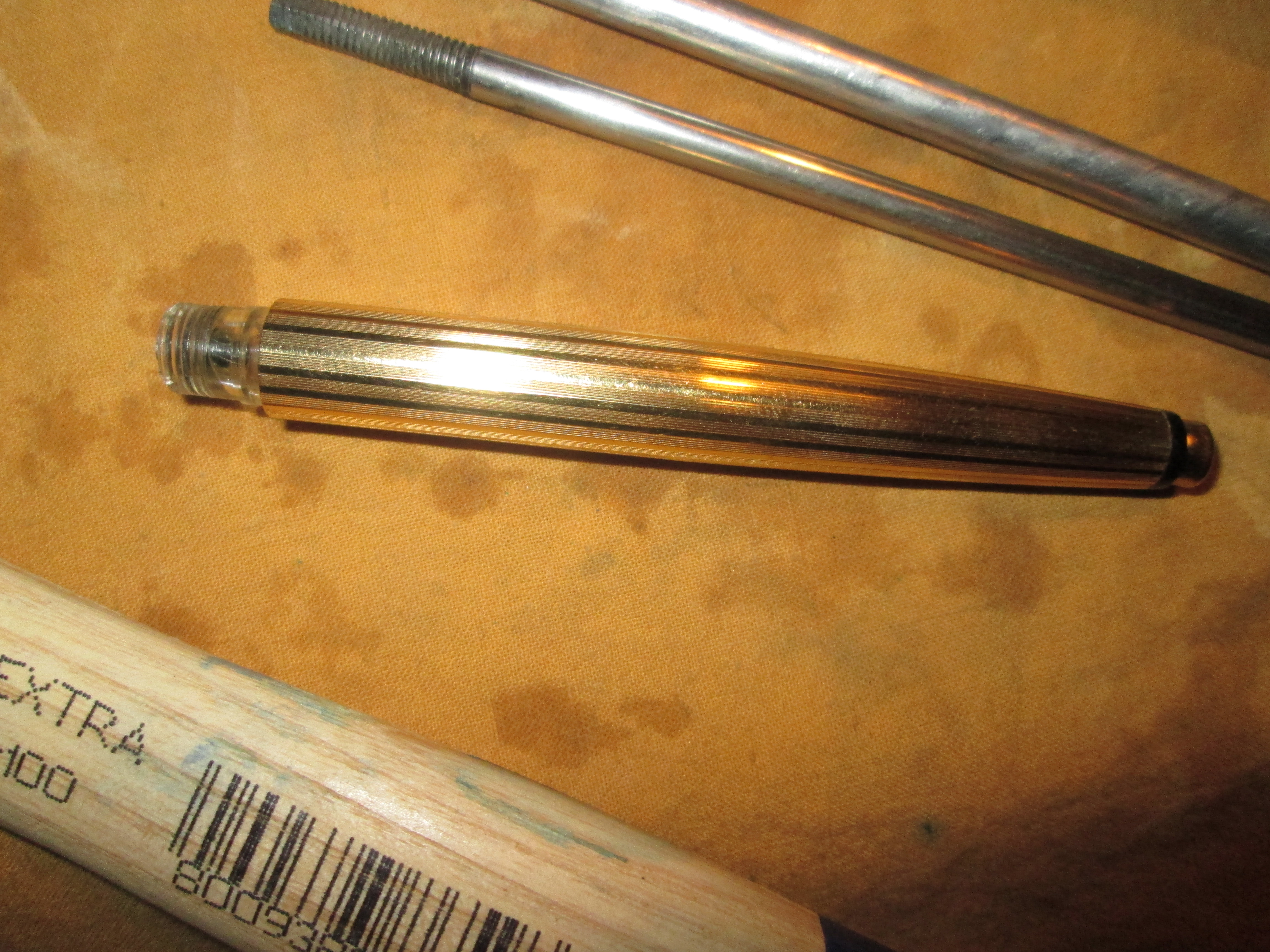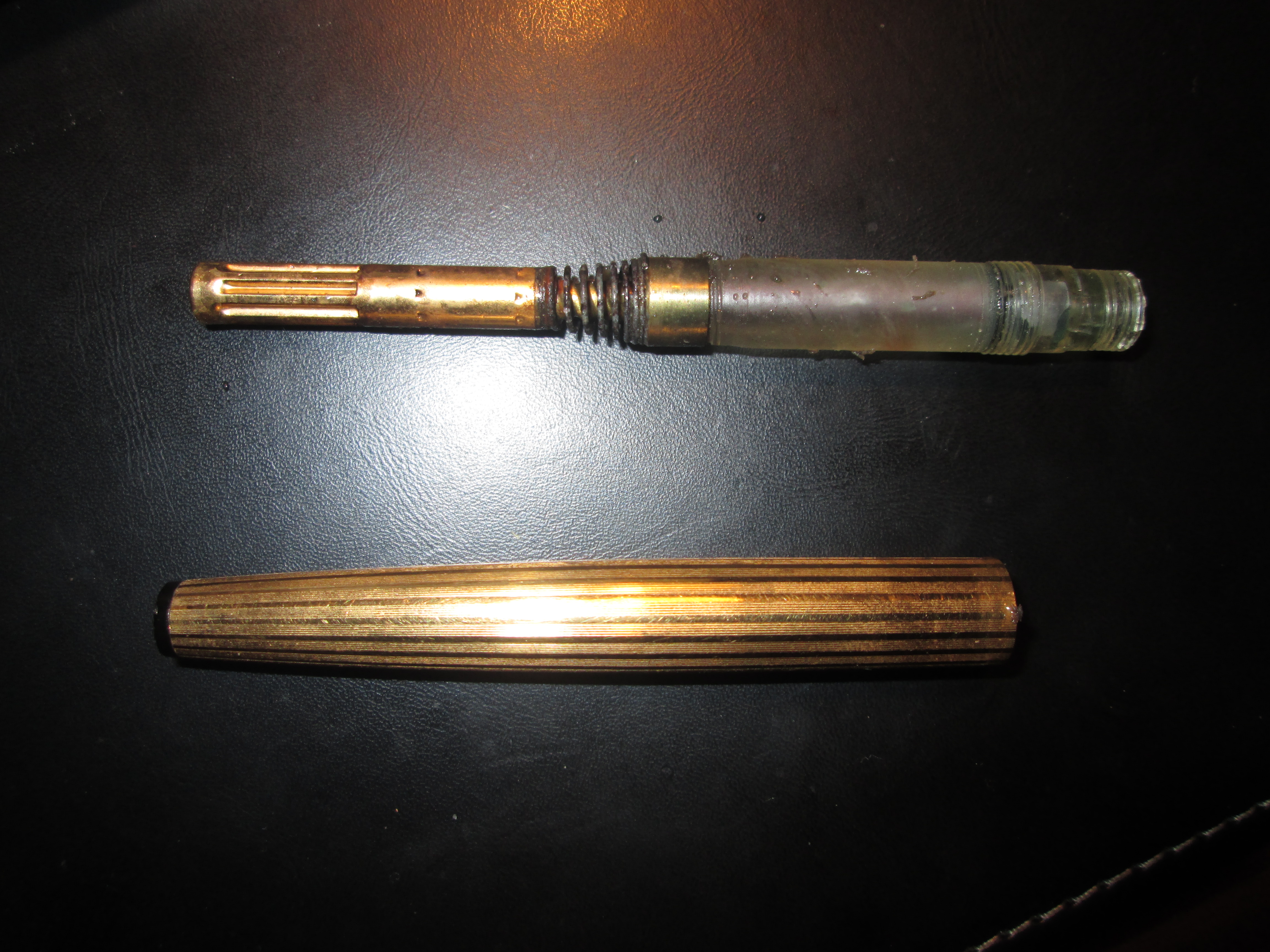 Niente da fare. Sembrerebbe quasi fosse incollato dentro, tra serbatoio di plastica e laminatura esterna. Inchiostro non ce n'è più, è stato tutta la notte con lo svitol, fatti altri 10 minuti a ultrasuoni. Forzando dal pulsante di carica verso il basso, per cercare di estrarre il serbatoio del corpo della penna, non si muove nulla. Il pulsante si muove per quei 4 millimetri di corsa che ha tra la parte che spunta e la coda del corpo penna, per capirci, ma non fuoriesce, rilasciandolo, per permettere il caricamento. La molla ha una buona tensione, ma lì finisce...
