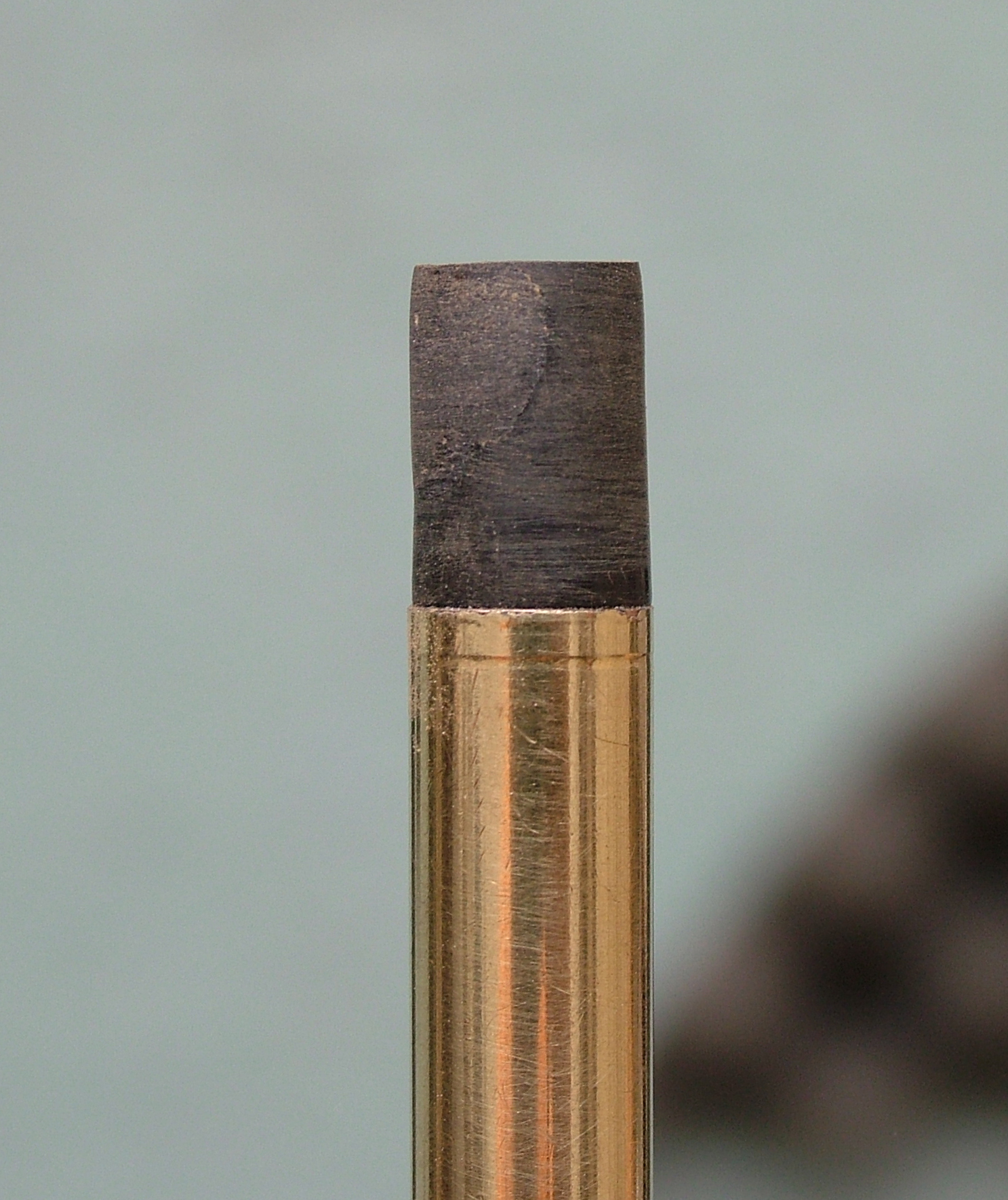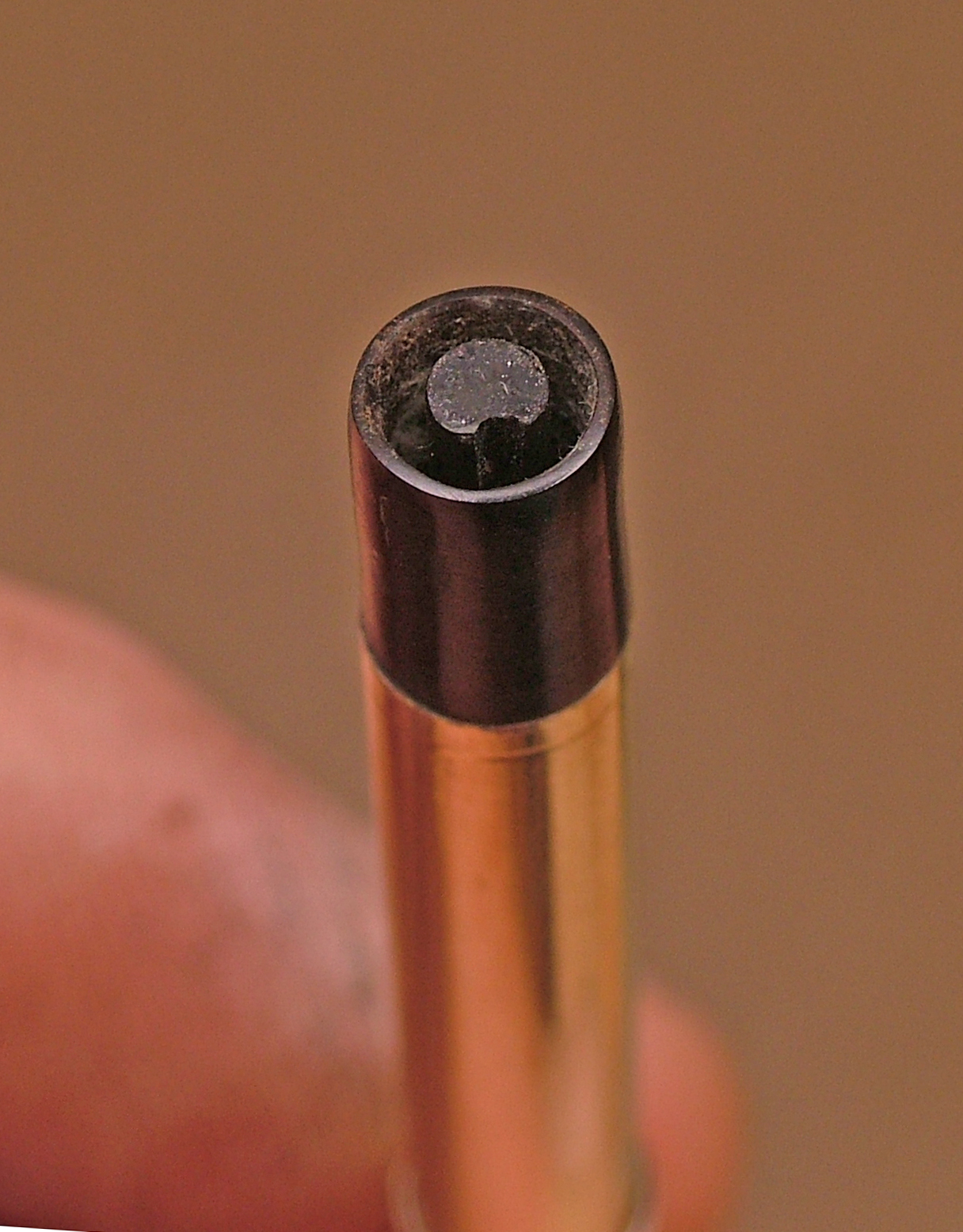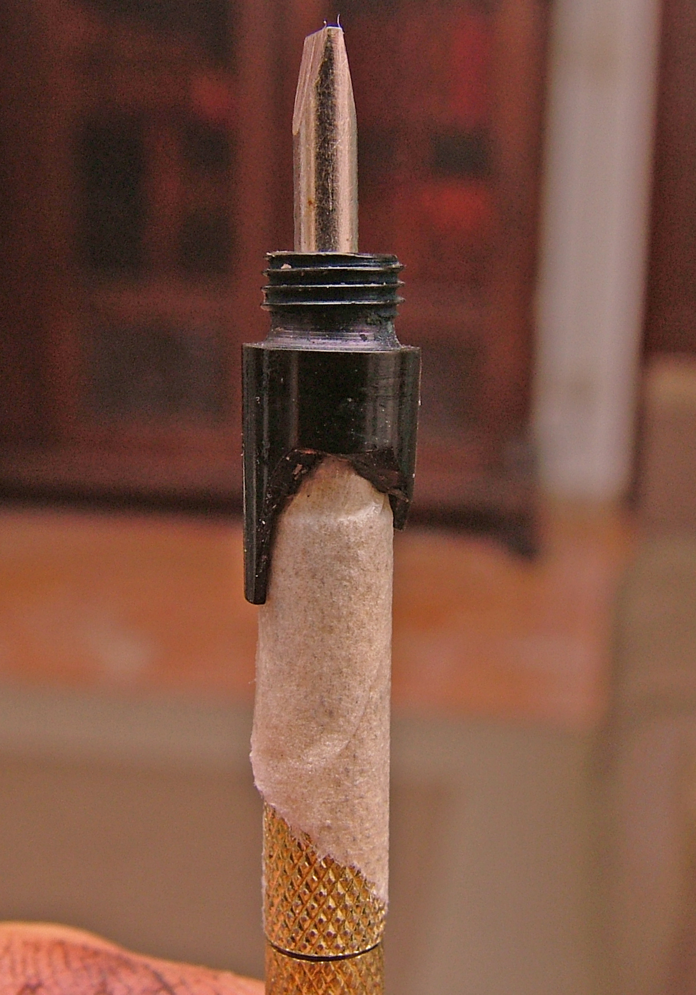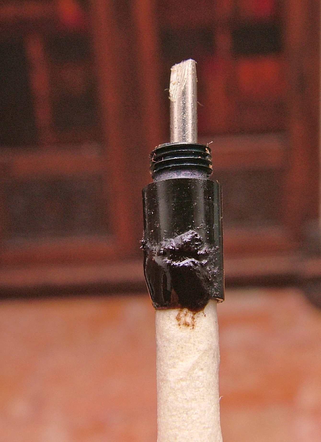 Ho usato un mini giravite della misura esatta dell'interno, al quale ho fatto un giro di carta gommata ricoperta da grasso al silicone per limitare al massimo l' incollaggio della pasta di Ebanite ed Attak ottenuta polverizzando l'ebanite (un rottame passato su una lima) miscelato appunto con dell' Attak.