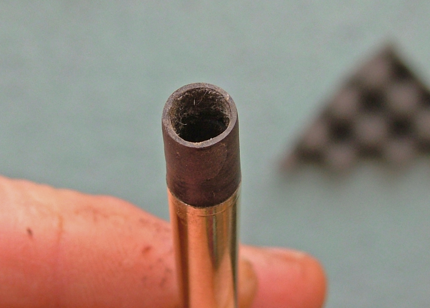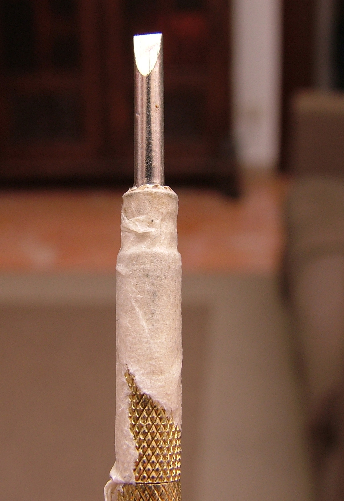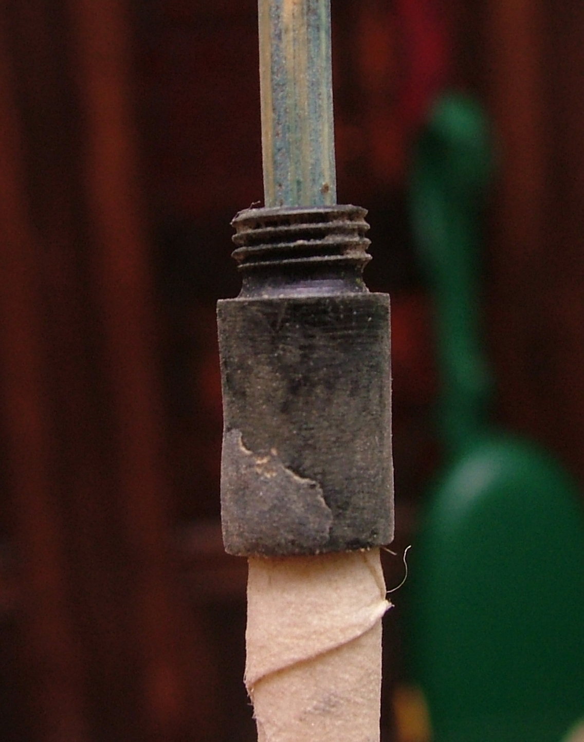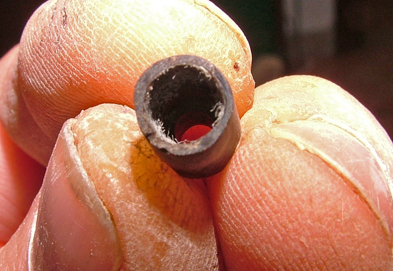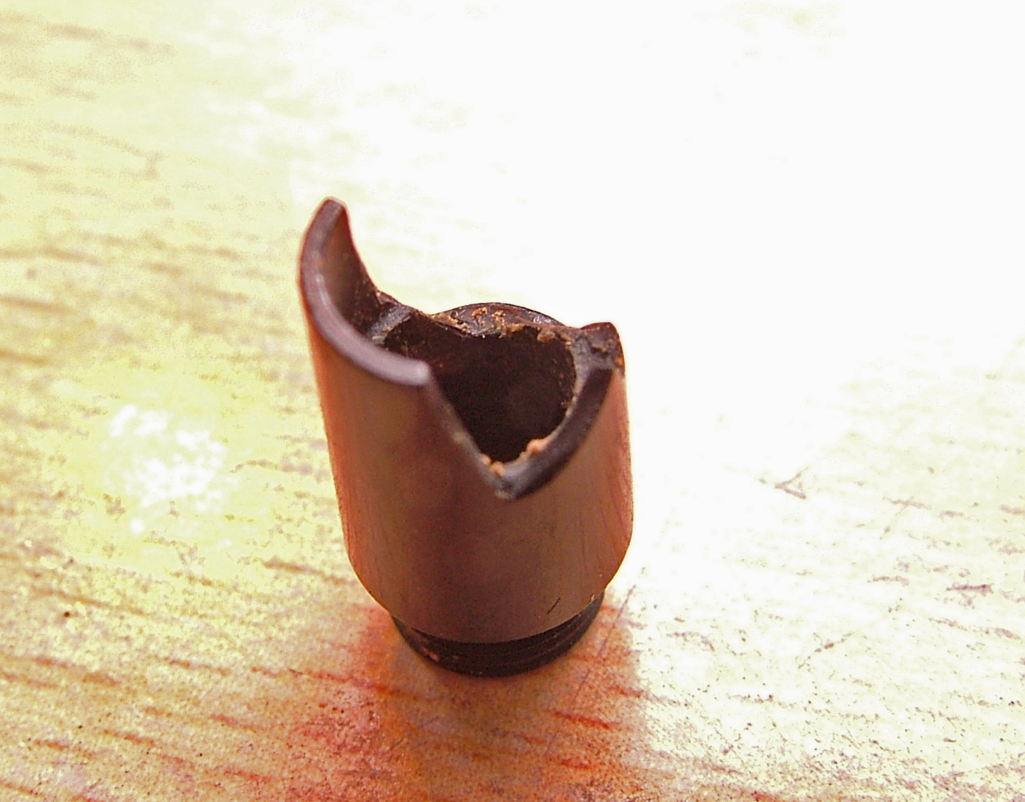 Ho usato un mini giravite della misura esatta dell'interno, al quale ho fatto un giro di carta gommata ricoperta da grasso al silicone per limitare al massimo l' incollaggio della pasta di Ebanite ed Attak ottenuta polverizzando l'ebanite (un rottame passato su una lima) miscelato appunto con dell' Attak.