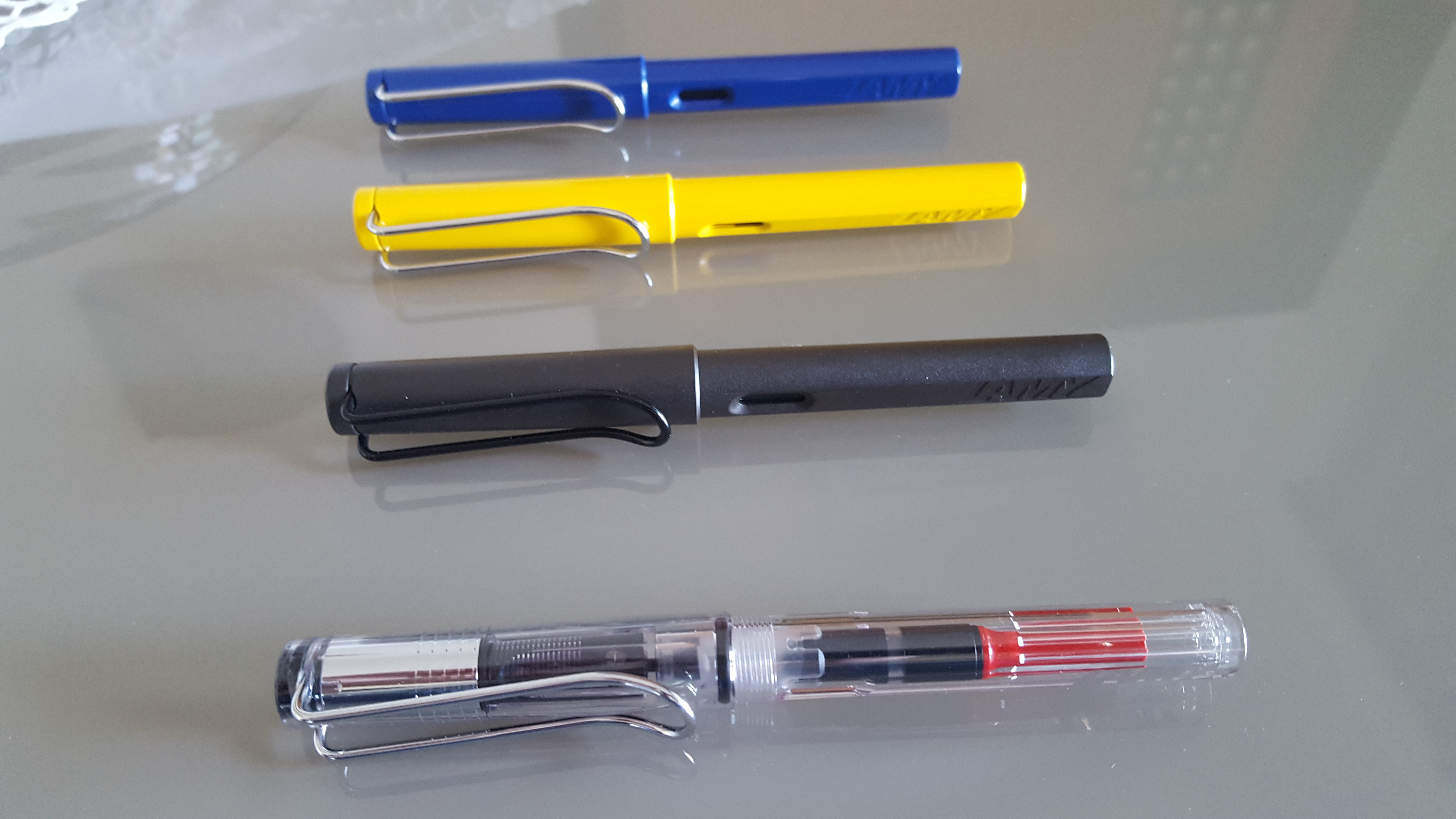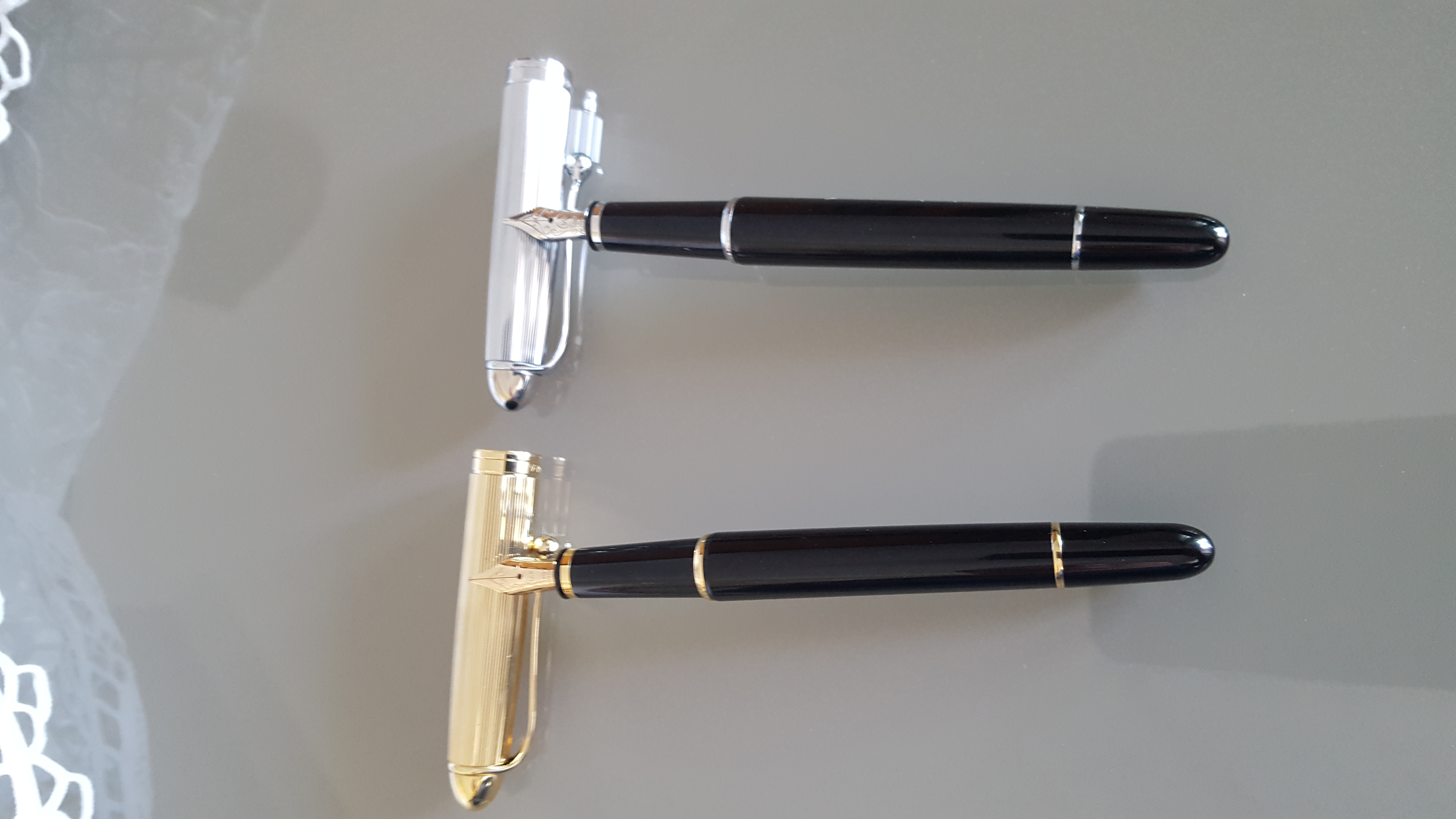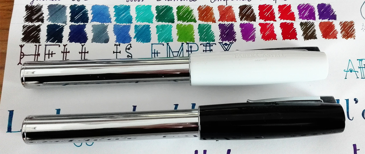 Due delle mie Faber-Castell Loom Piano. Una con pennino M e l'altra con il mio primo pennino B. Sono pesanti per me, ma i pennini sono eccellenti.