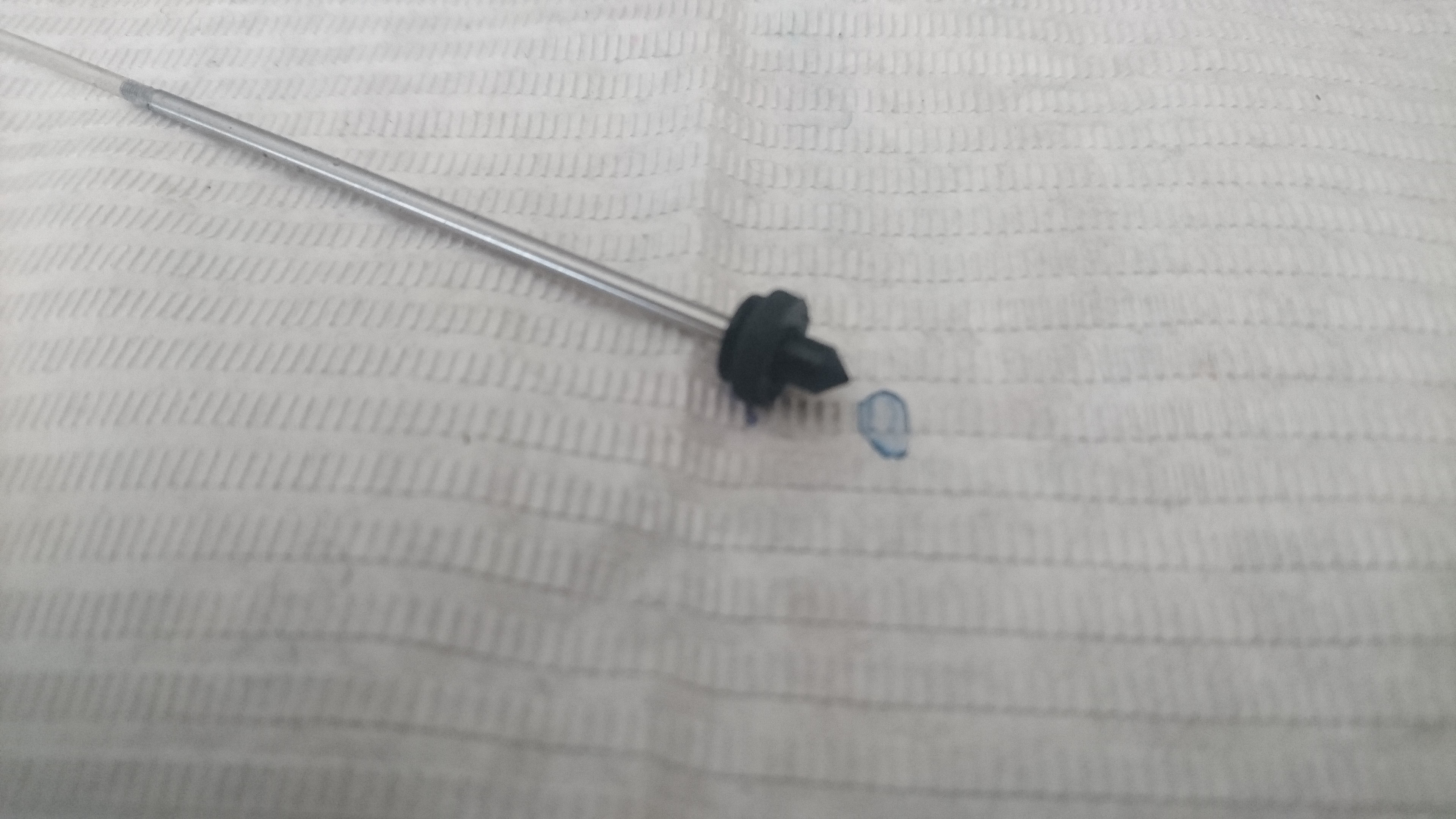 Come si può vedere la guarnizione sull'astina è completamente rovinata. A questo punto avevo due possibilità, ordinare una nuova guarnizione ed aspettare, oppure arrangiarmi con quello che avevo a disposizione.