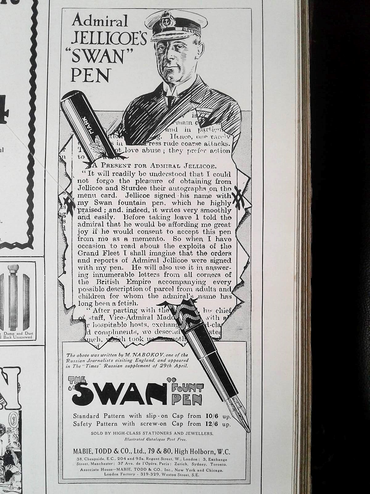 Un annuncio pubblicitario della Swan pubblicato sulla rivista "The Sphere" nel 1916