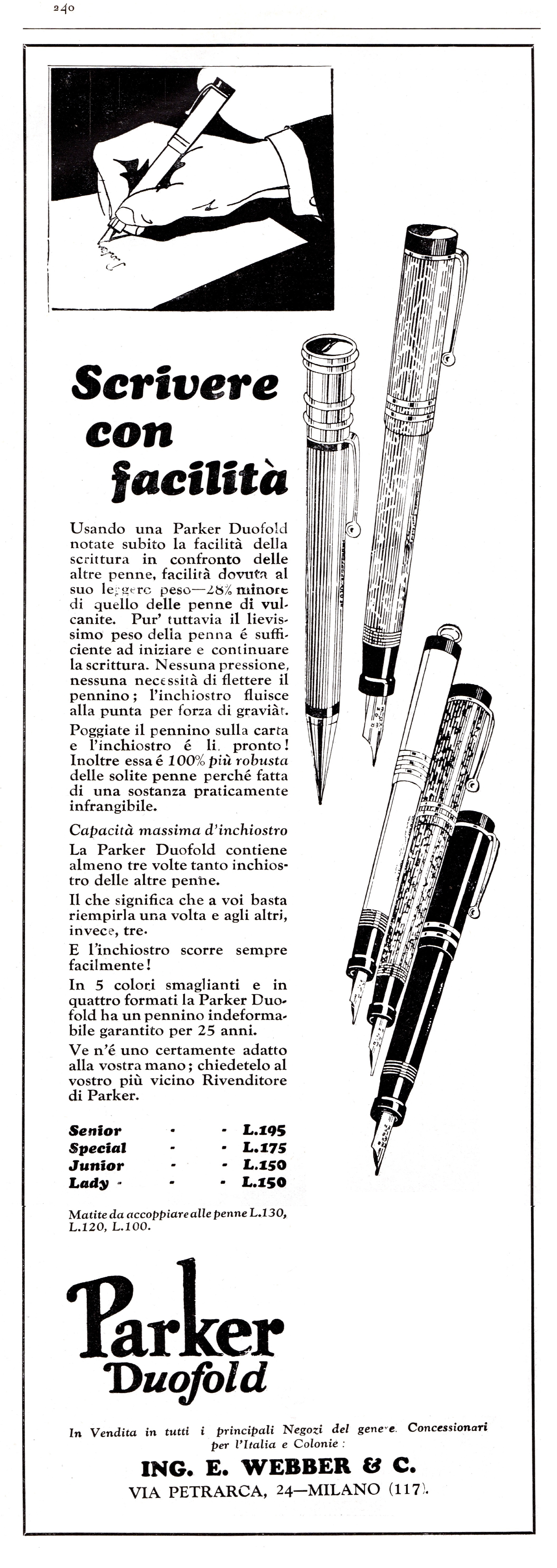 una classicissima Parker Duofold in cellulolide (italiana agostana!