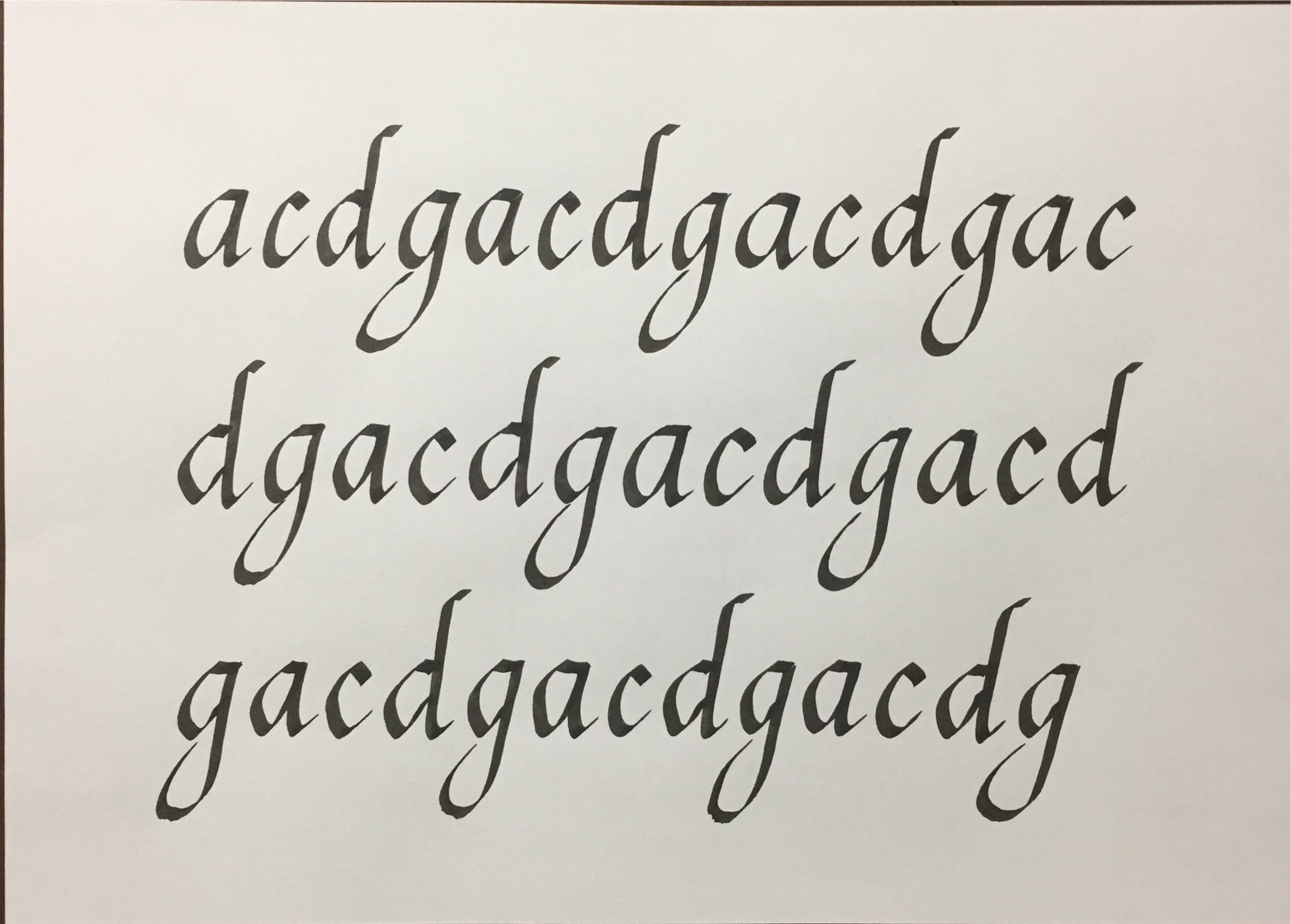 Mi concentrerei su una lettera alla volta, in sequenze di due o tre, per poi confrontarle con il modello di riferimento, apportando le eventuali modifiche. In questo modo avrai un controllo molto preciso su ogni lettera.