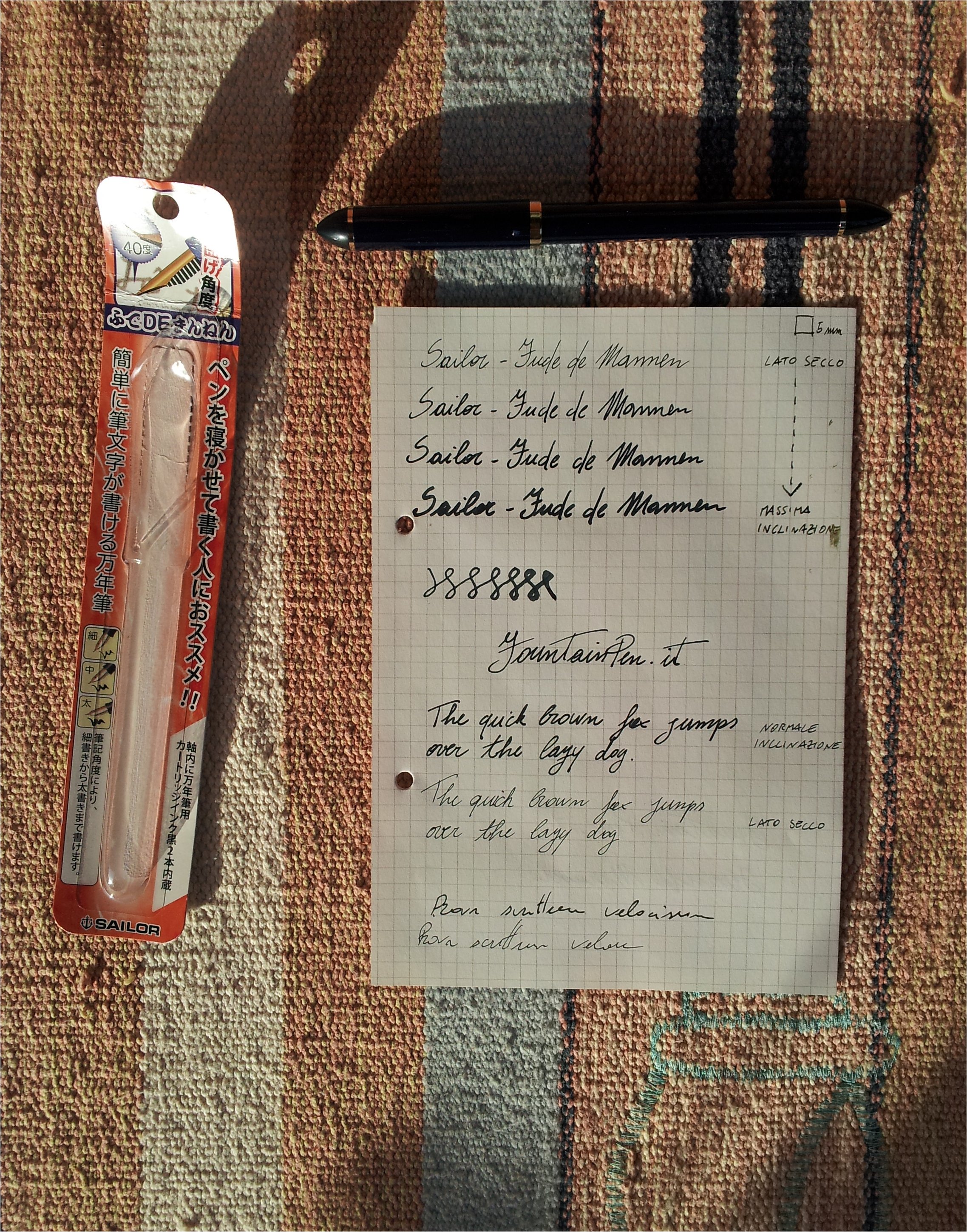 Questa penna monta un pennino fude (pennello, in giapponese) che, come si evince dal nome, si comporta quasi più come un pennello che non come un pennino di una stilografica, poiché la punta piegata permette una variazione del tratto davvero ampia.