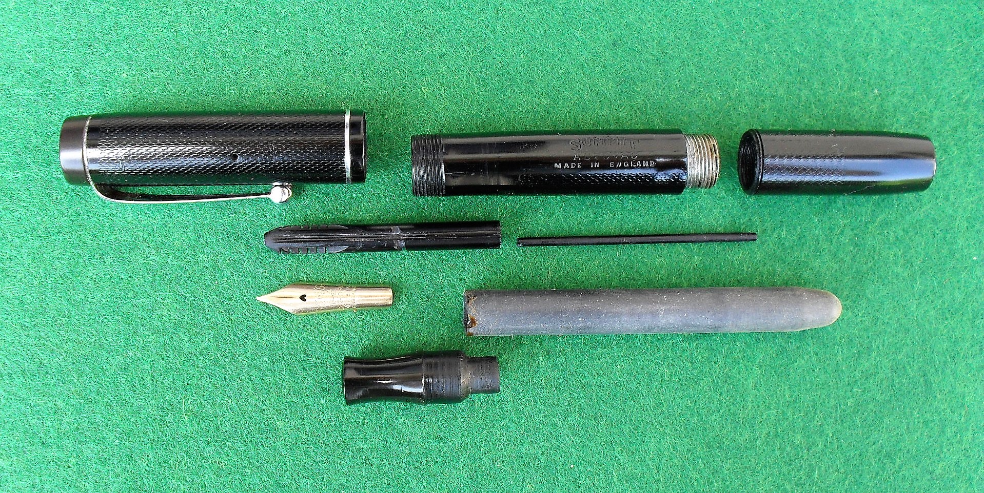 Era dotata d’un sistema di caricamento nuovo ed abbastanza semplice (dunque di più conveniente manutenzione), che garantiva una capacità d’inchiostro maggiore di quella delle stilografiche a levetta od a pulsante di fondo. In buona sostanza, il sacchetto, ancorato in modo convenzionale alla parte posteriore della sezione, attraversava tutto il corpo della penna; la parte posteriore del corpo era svitabile, per ottenere l’accesso al fondo del sacchetto. All’interno di quest’ultimo, inserito a pressione in un foro praticato nella parte posteriore dell’alimentatore, era installato un tubo d’ebanite. L’alimentatore era dotato di un condotto di comunicazione con il tubo, cosicché la compressione del sacchetto causava la depressione necessaria per il caricamento dell’inchiostro. La parte inferiore dell’alimentatore di questa penna riporta la scritta “patpend” (brevetto in corso), il che suggerisce che la produzione sia avvenuta fra il 28 Ottobre 1933, data d’inoltro della richiesta di brevetto, ed il 16 Agosto 1934, data d’accettazione del brevetto, al quale fu assegnato il numero 414.929.