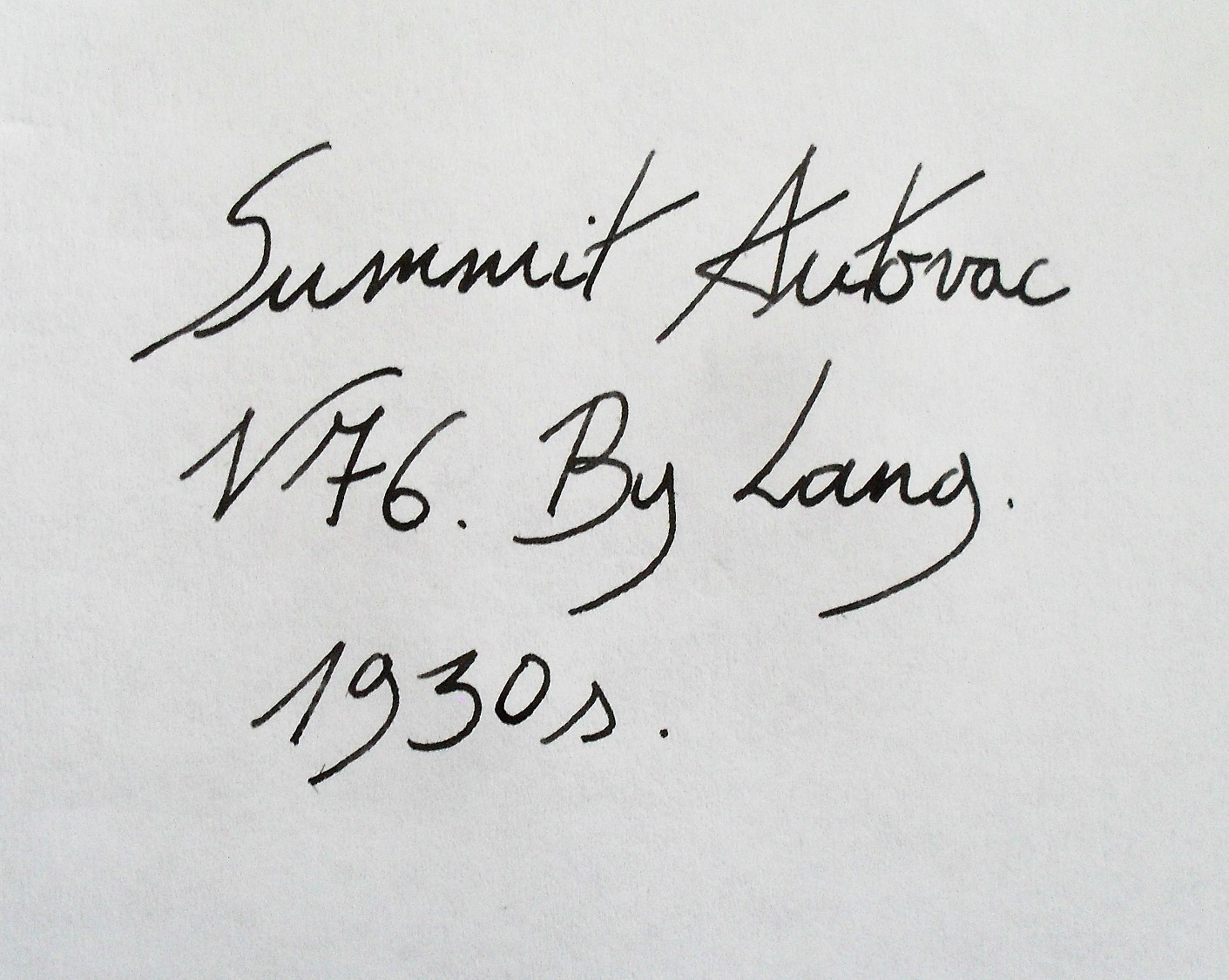 Curiosamente, al contrario di quanto normalmente accadde per i prodotti Summit, la sigla del modello non è riportata sulla penna: Molto probabilmente, il pennino della stilografica che vedete (un bel Phillips Oxford in oro a 14 carati) non è quello originale, ma è certo (ne è stato individuato almeno un esemplare) che Lang decise di dotare questo modello, o almeno la sua versione più costosa, di un pennino personalizzato, che riportava la scritta, su tre livelli, “Summit - 14ct (inserito in una losanga orizzontale) - Autovac”. Ecco le caratteristiche principali della penna: