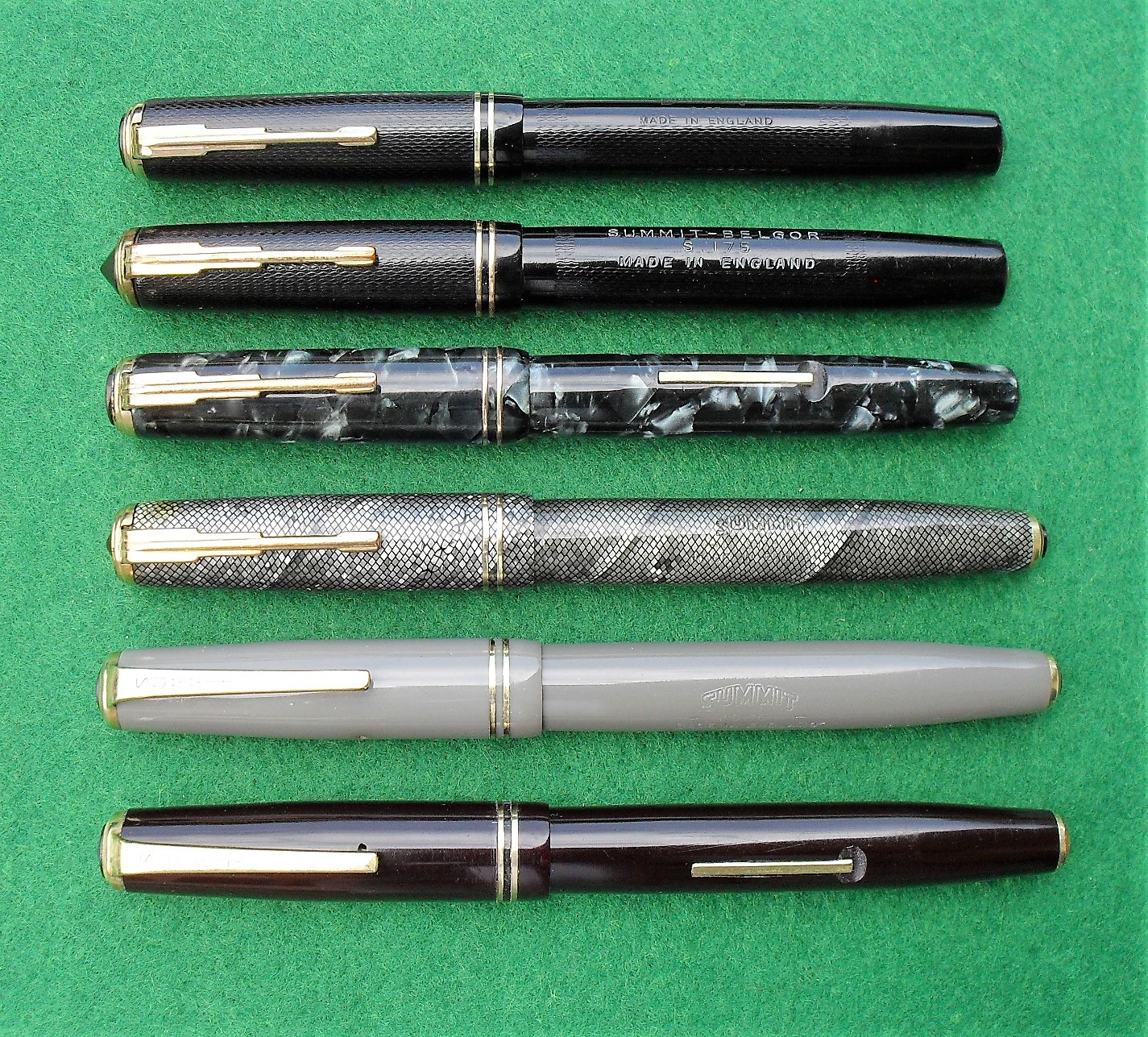 Nelle due immagini che vi offro viene sintetizzata l’evoluzione della Summit S. 175, stilografica di punta del marchio fra il 1935 ed il 1947.