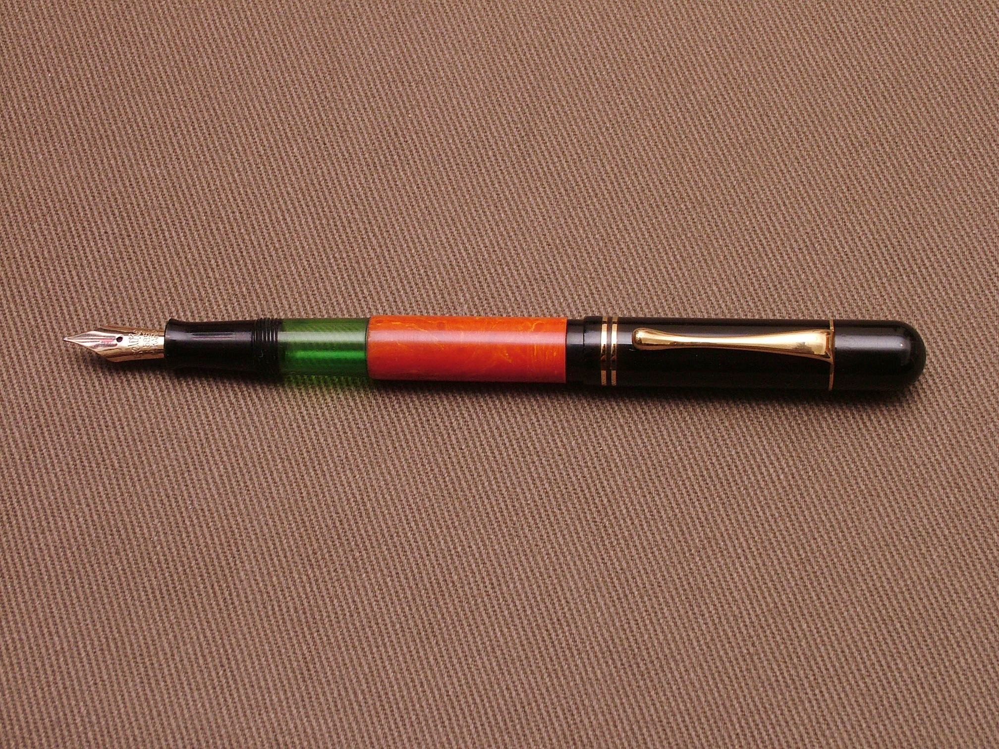 La Pelikan 100 di Massimo ha il binde rifatto da Tom Weistrich usando della celluloide arancione Visconti, per questo il colore della finestra non è intonato.