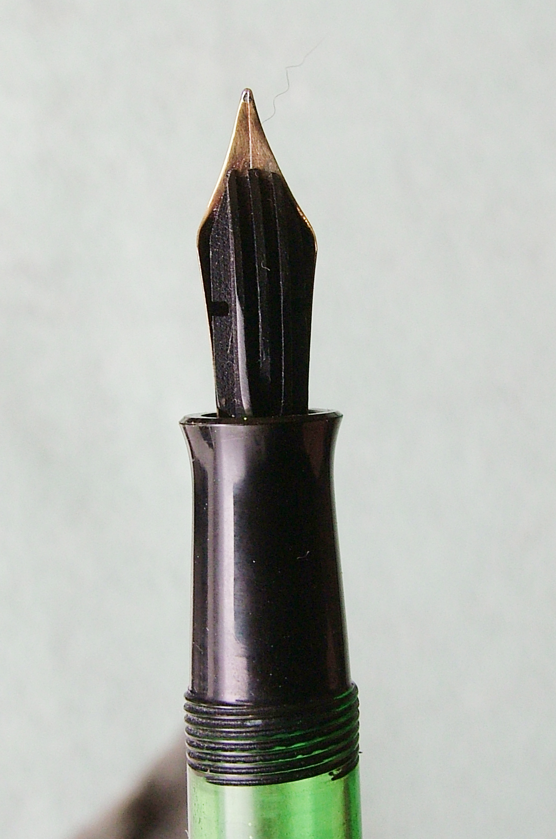 La Pelikan è molto particolare in quella colorazione (era una edizione speciale per l'estero? Magari mi ricordo male...), i pennini "karat" a livello di scrittura trovo che siano i migliori. Quel verde stona un po', avessero fatto la finestra d'ispezione gialla/ambrata poteva aver il suo gran bel perchè