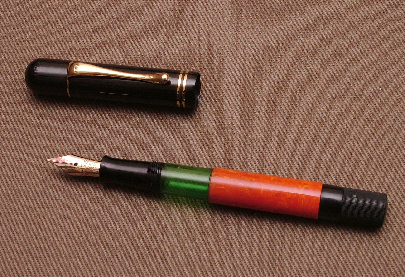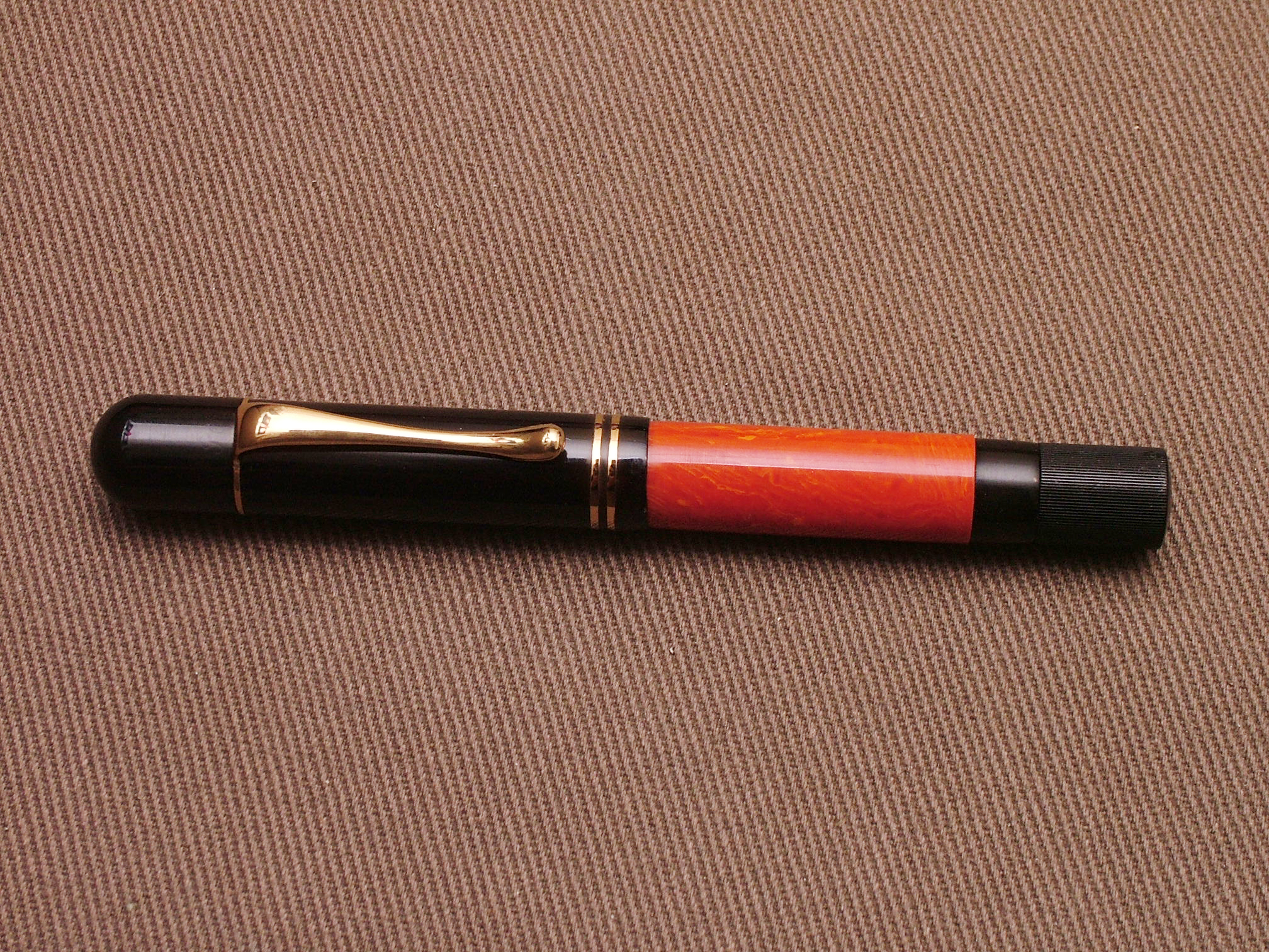 La Pelikan 100 di Massimo ha il binde rifatto da Tom Weistrich usando della celluloide arancione Visconti, per questo il colore della finestra non è intonato.