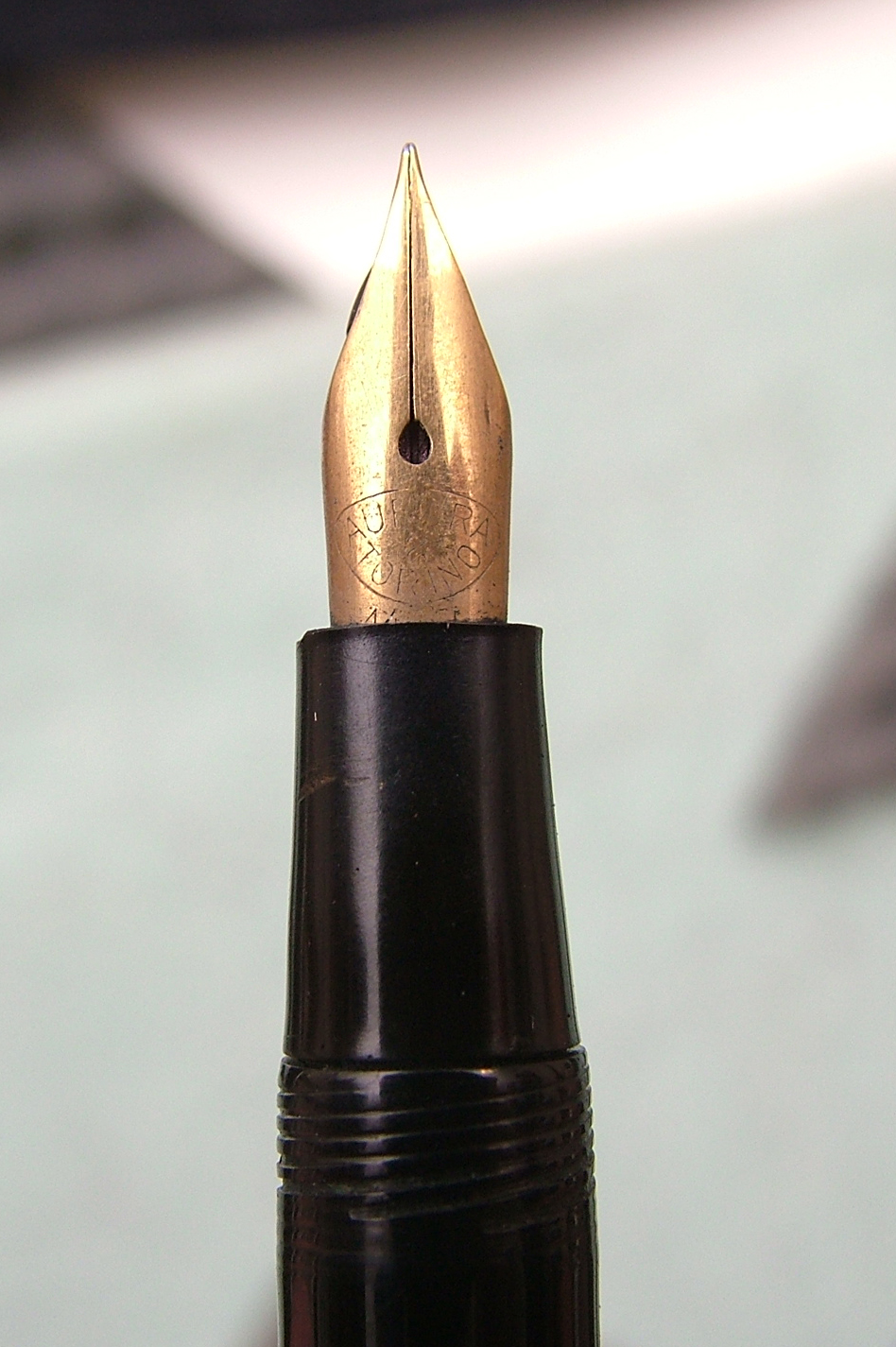 Non mi pare di averle mai provate; comunque non possono differire molto dalle altre penne Aurora coeve: il pennino a spalla larga è scorrevole ma piuttosto rigido; quelli del tipo montato sulla penna di Max sono flessibili e ricordano i vecchi Waterman.