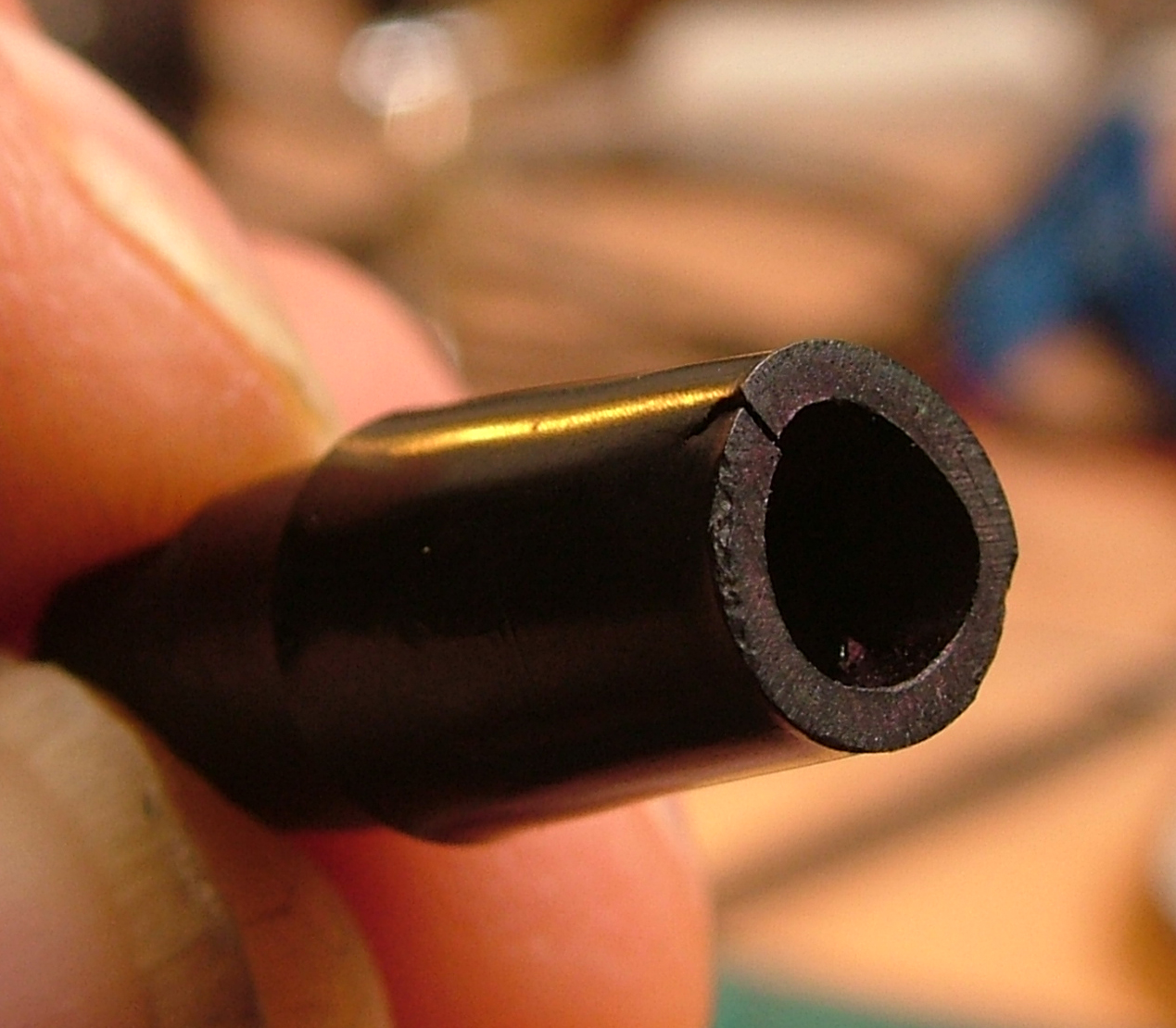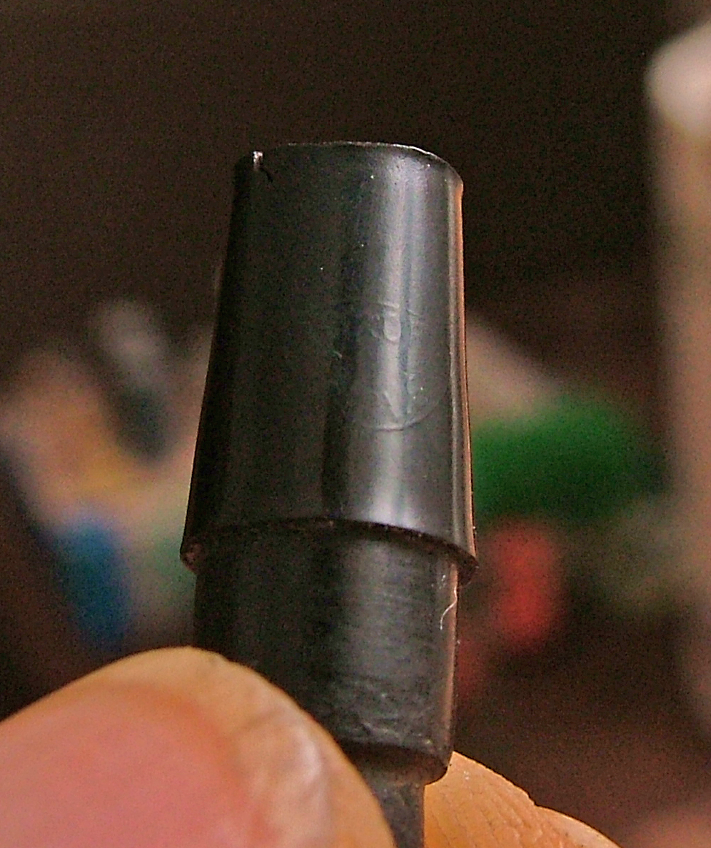 Proverei prima con una bella scaldata per sfruttare l'effetto "memoria" dell'ebanite; poi si potrebbe provare a tagliare e giuntare appena sopra il marchio. Però non avendola in mano potrei anche dire cose a vanvera...