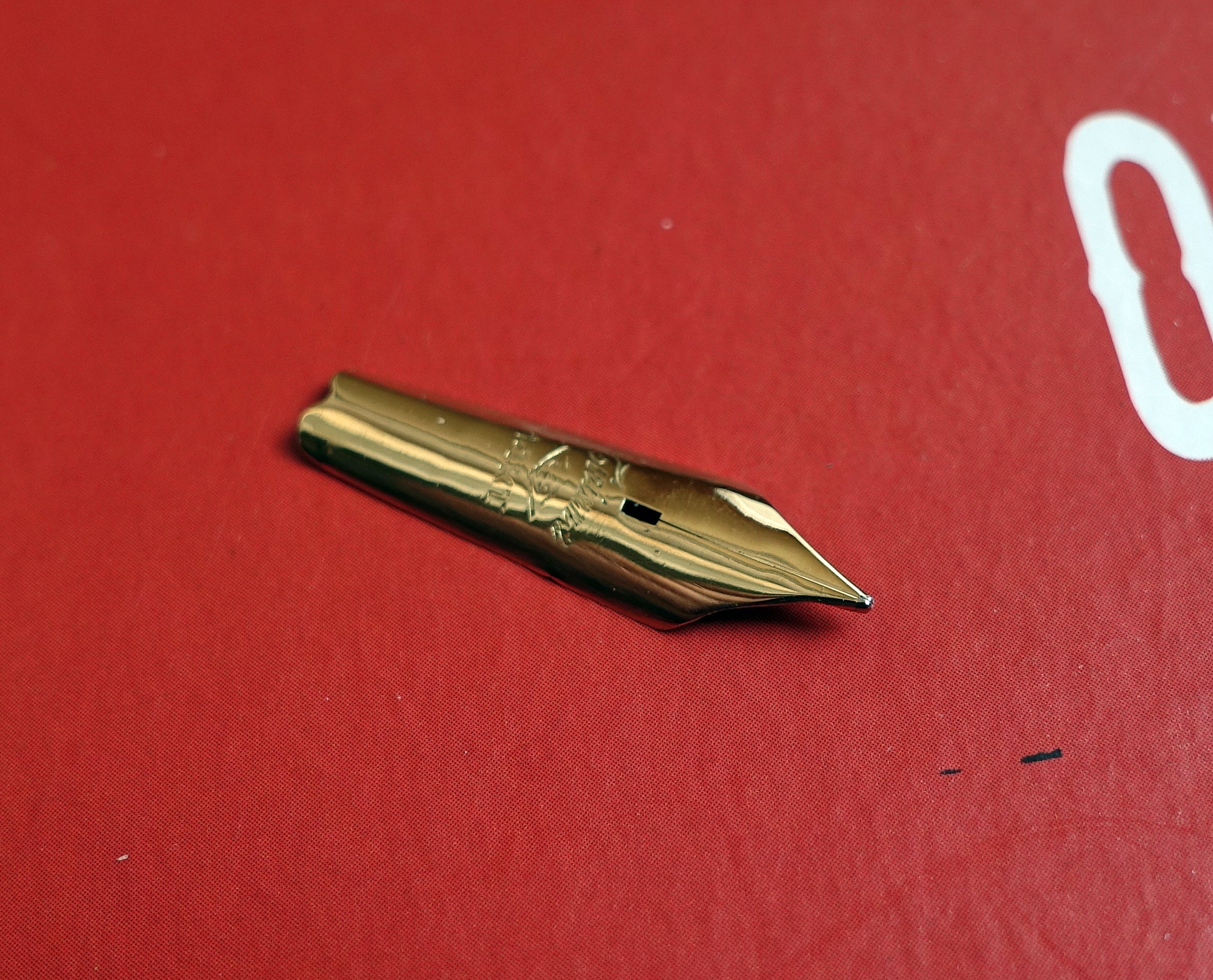 Qualcuno mi può aiutare a decifrare o conosce questo pennino, materiale, periodo di costruzione, c'è scritto 2,5 e 1,1 KT, è molto sottile e parecchio flessibile.