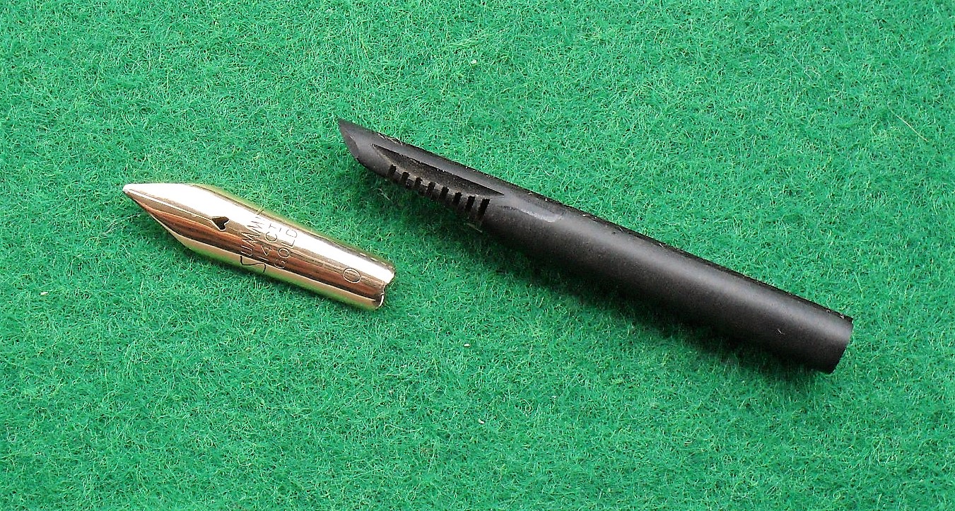 L’alimentatore, di classica architettura Summit, è dotato di due selle laterali e di alette e garantisce un flusso d’inchiostro generoso, senza intoppi. Il pennino è marcato “0” alla base ma non è particolarmente piccolo, misurando 5,3 x 21,5 mm. Alcuni pennini riportavano la scritta “Cub 14 Ct Gold”.